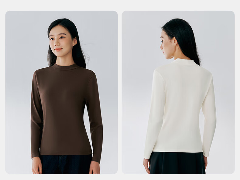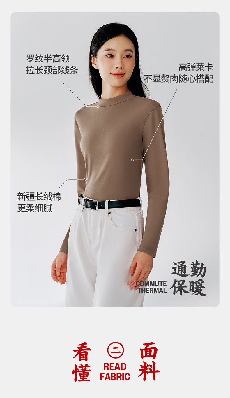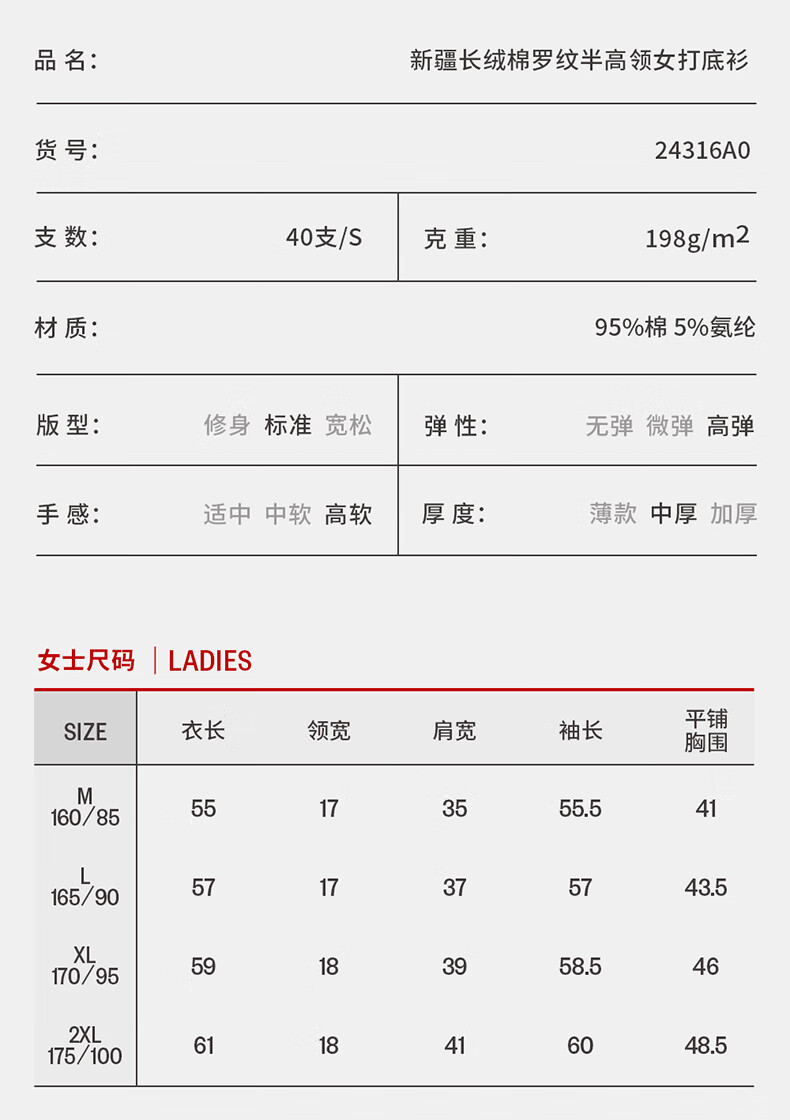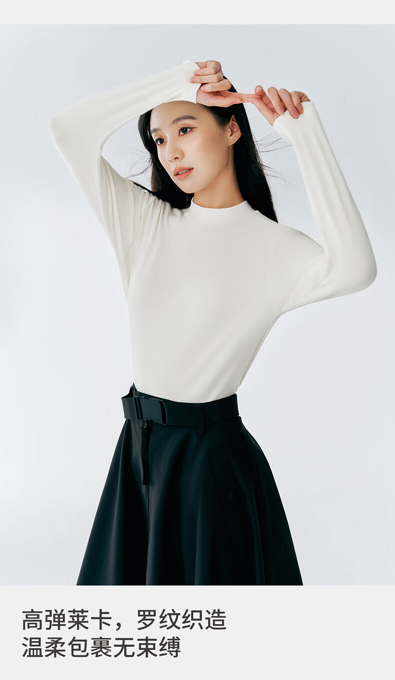 Three-gun Lycra long-staple cotton half-high collar women's long-sleeved ribbed high-elastic inner wear soft skin-fitting slimming bottoming shirt