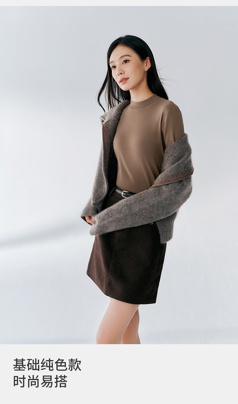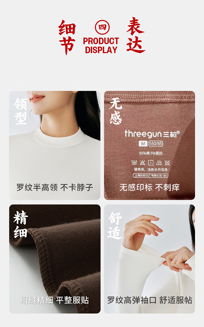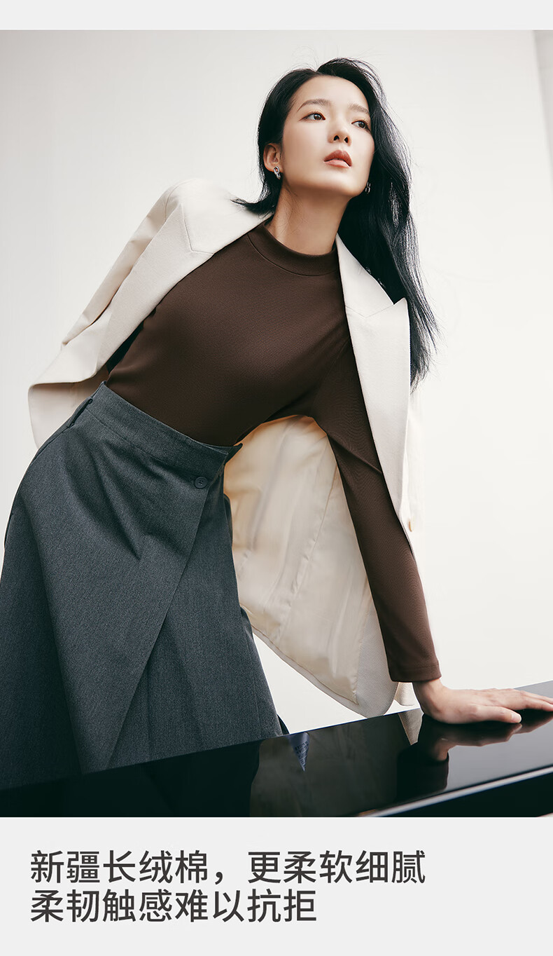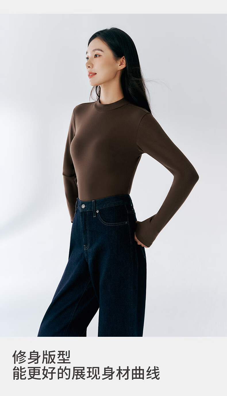 Three-gun Lycra long-staple cotton half-high collar women's long-sleeved ribbed high-elastic inner wear soft skin-fitting slimming bottoming shirt