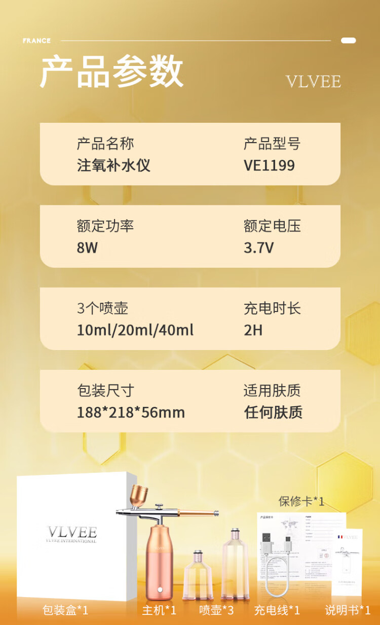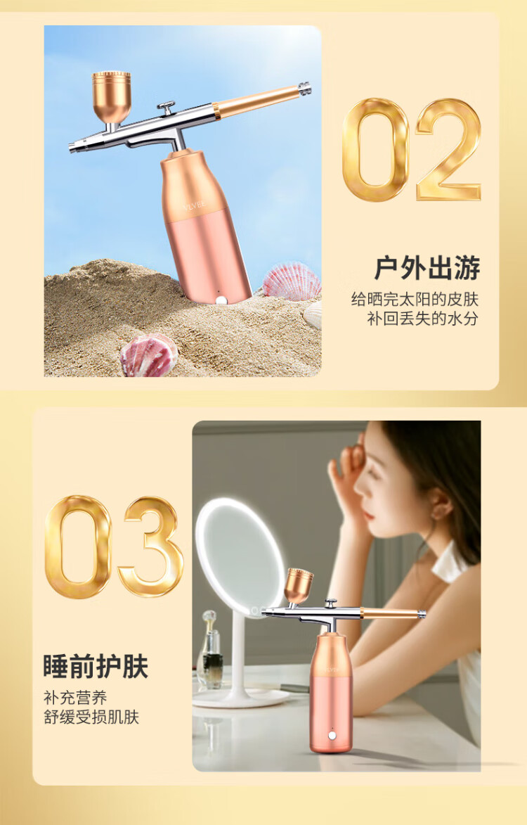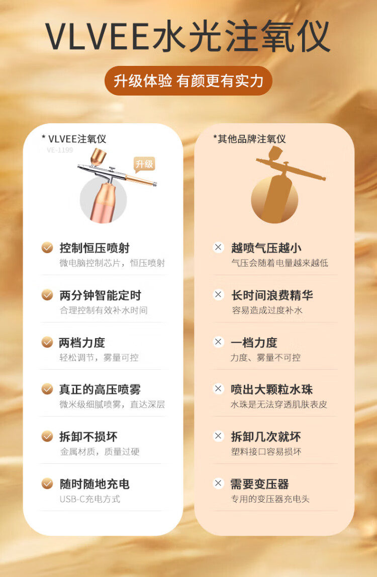 VLVEE High Pressure Oxygen Injection Instrument Home Nano Spray Hydration Instrument Small Bubble Cleansing Beauty Salon Portable Essence Introduction Birthday Gift for Girlfriend and Wife Exclusive Champagne Gold Oxygen Injection Skin Rejuvenation + 2 Levels Adjustable + Intelligent Timing