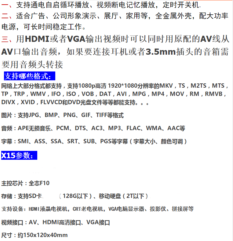 Melido X15 HD Blu-ray hard disk player 4K HD advertising play box timer switch power cycle video player network box TV set-top box standard (including HD cable)