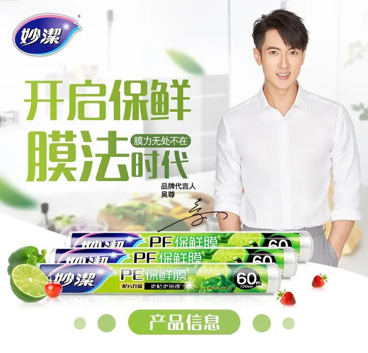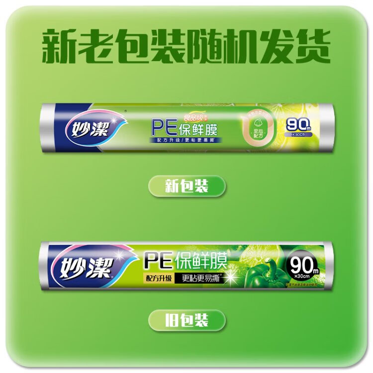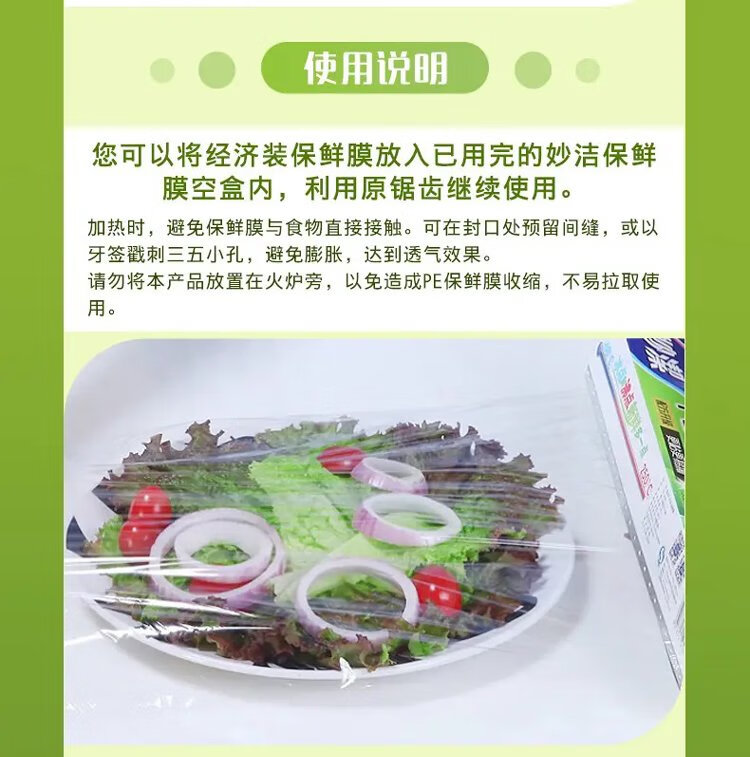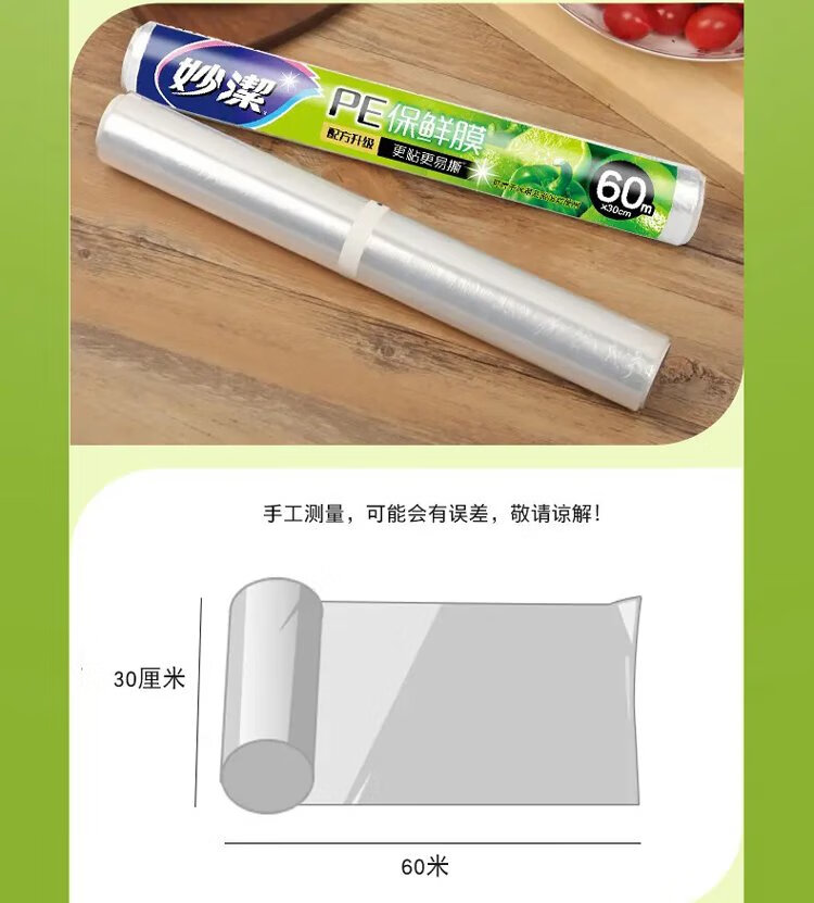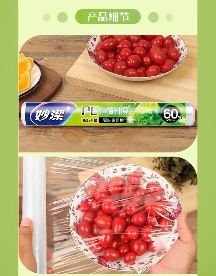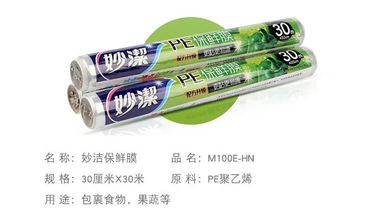 Miaojie PE cling film slimming wrap film suitable for microwave oven and refrigerator, value-for-money economical package 30cm wide (large bowl) economical package 90m*3 rolls