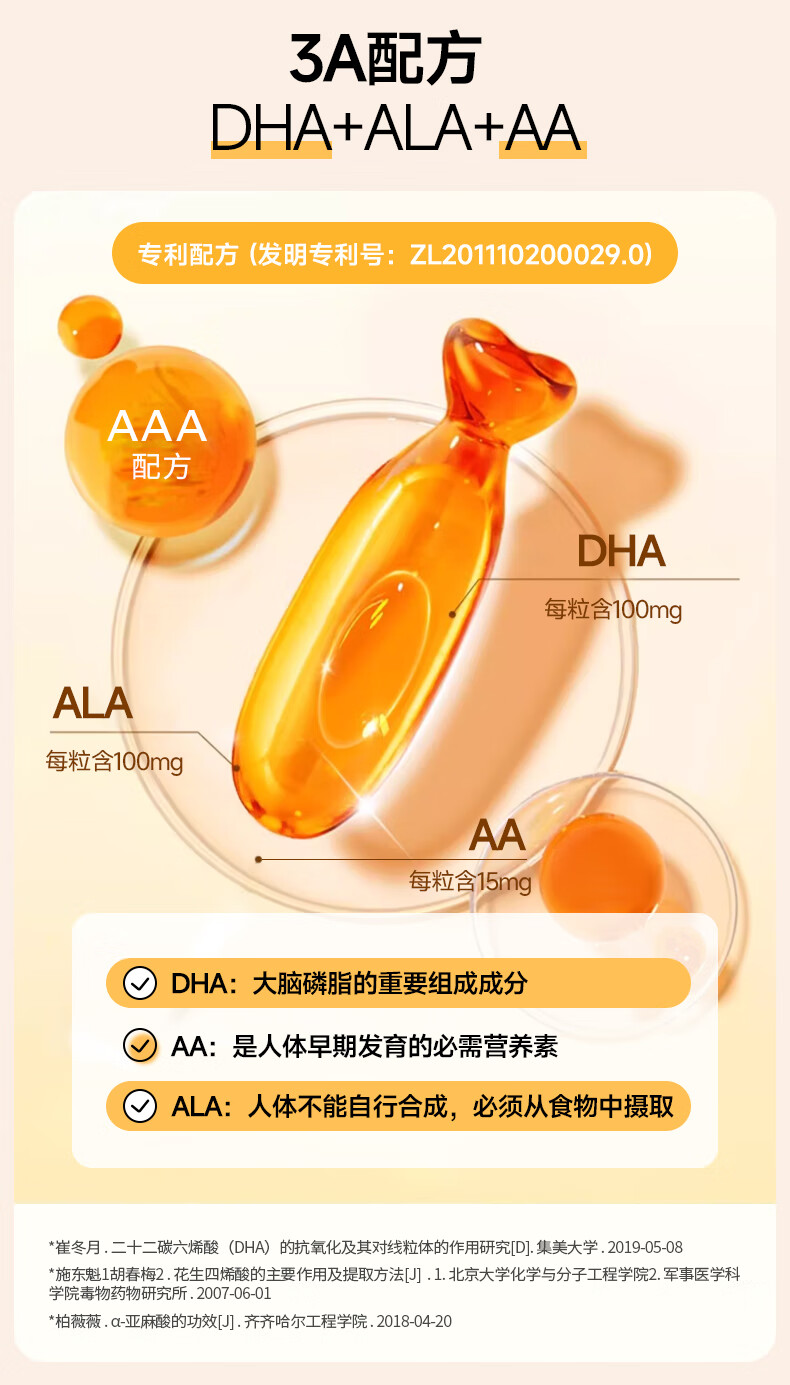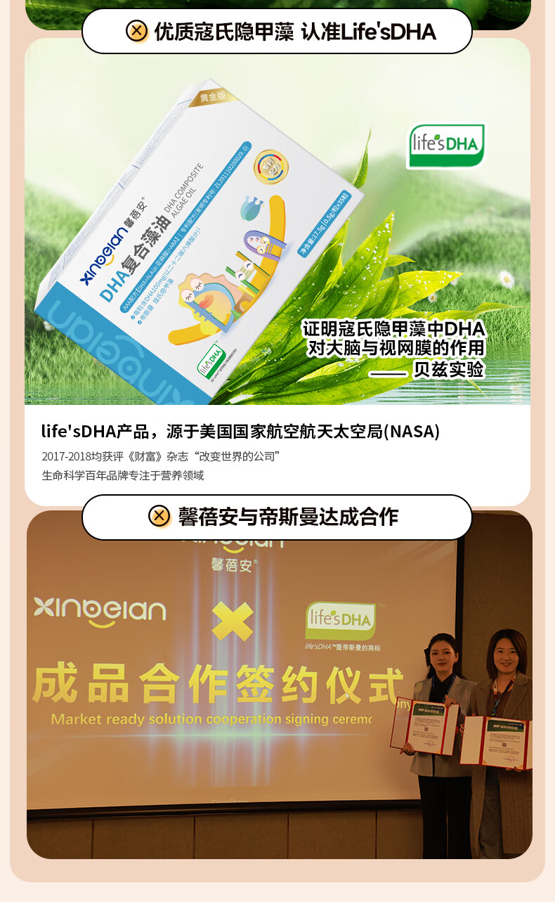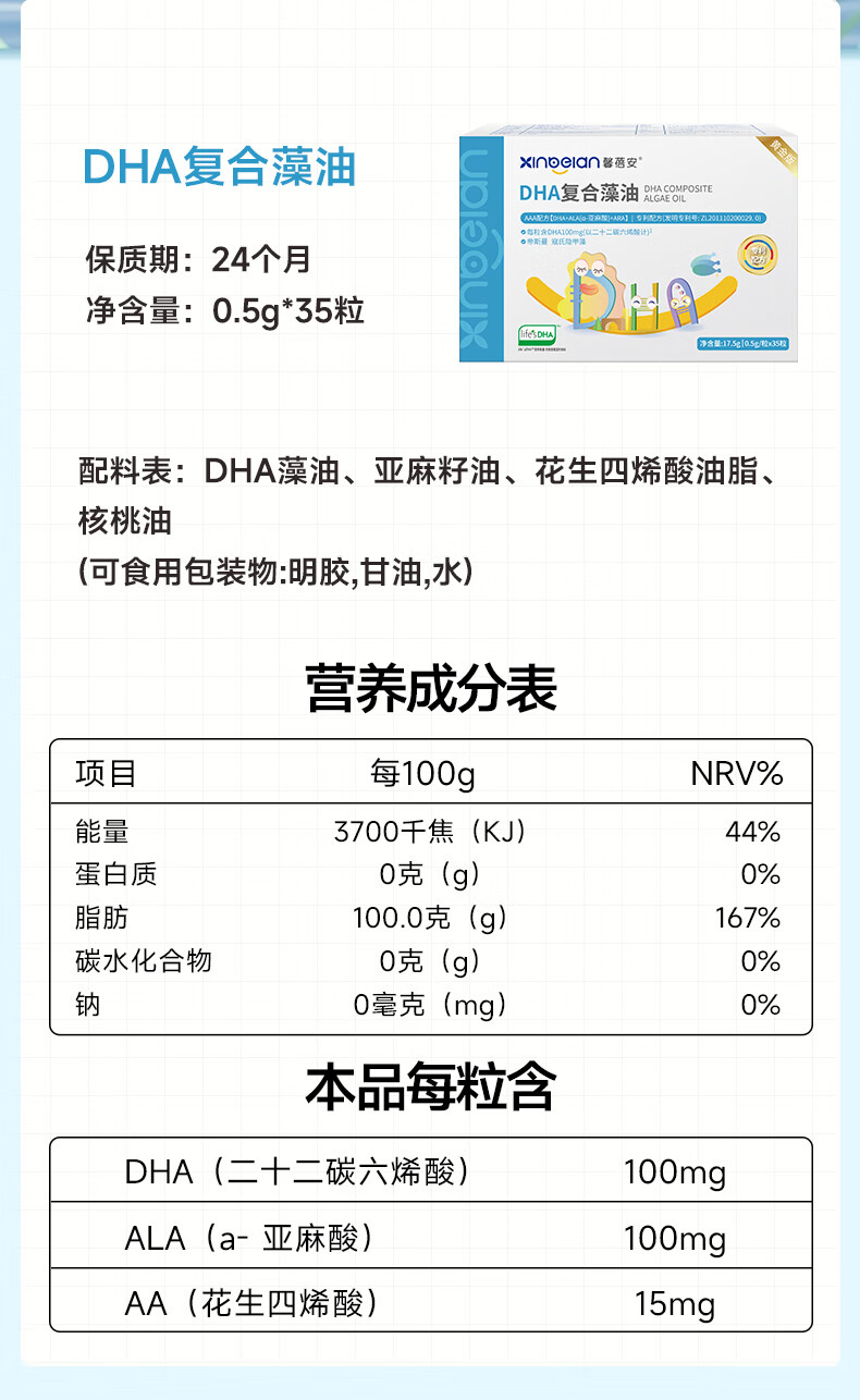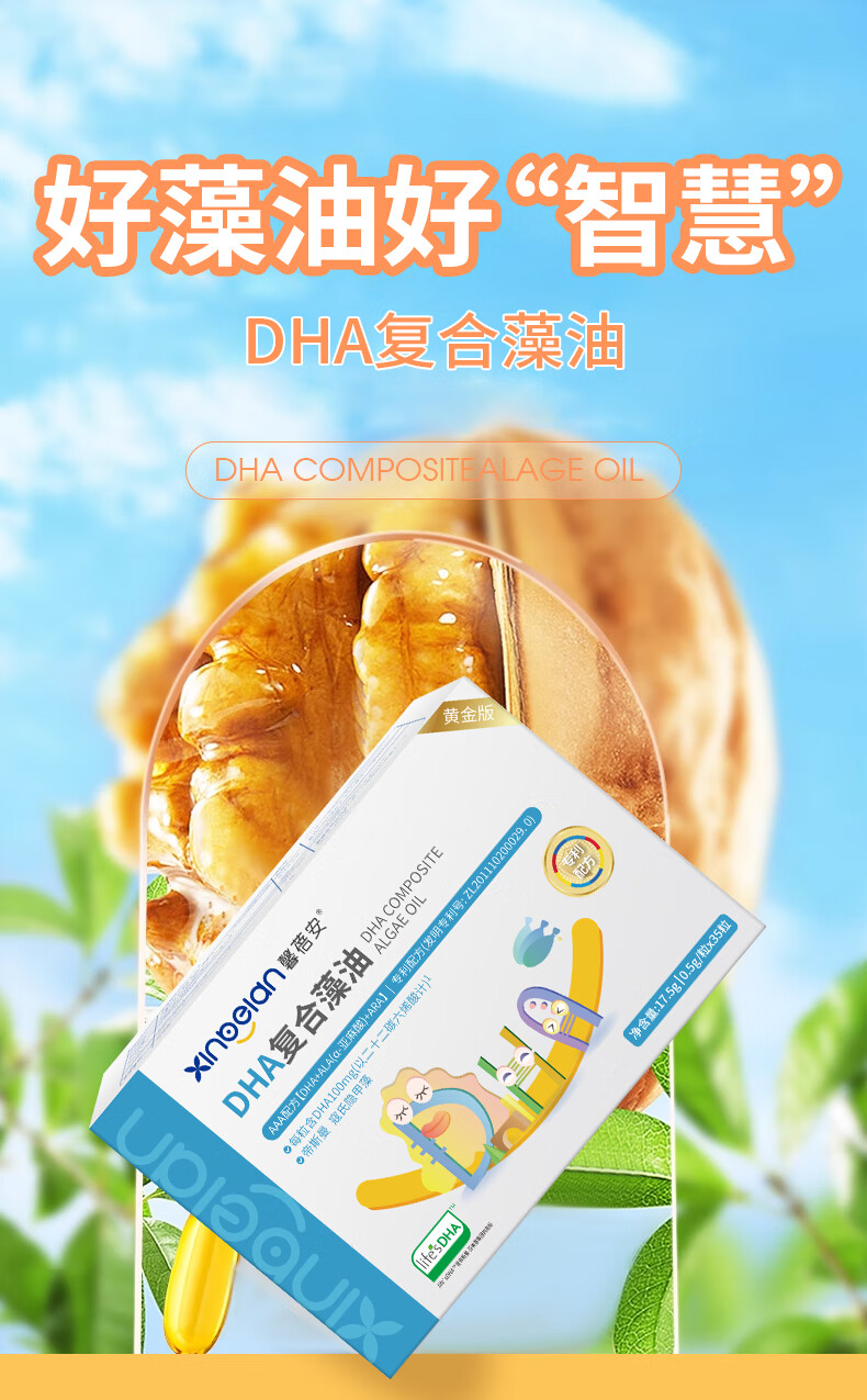 Xinbeian DHA Compound Algae Oil Flaxseed Oil Nutritional Soft Capsule Natural Seaweed Oil for Pregnant Women and Lactation