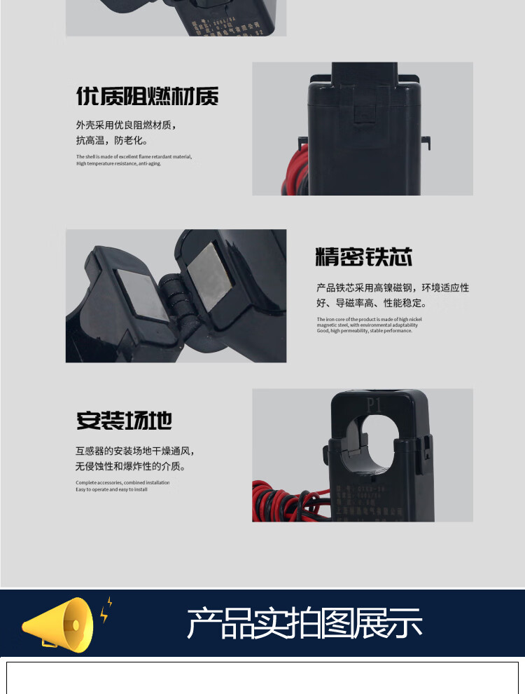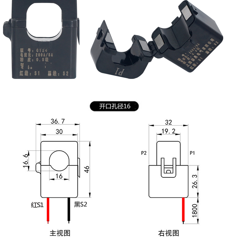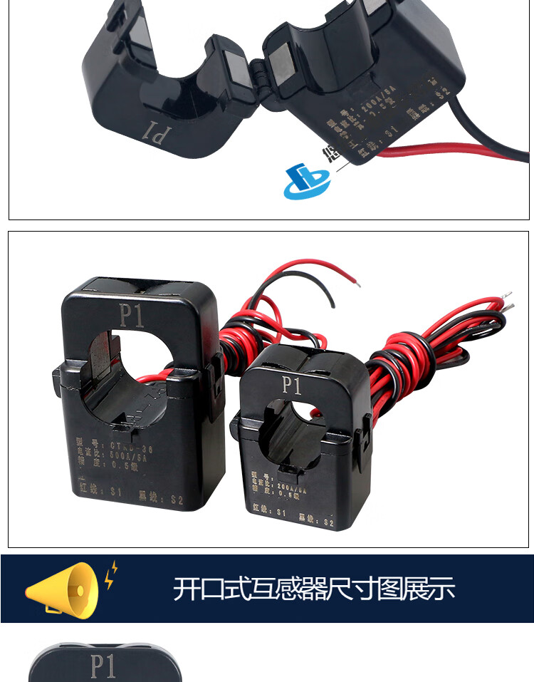 Zhongdun open-type current transformer KCT36 three-phase open-close type open-type small disassembly-free and power-off AC transformer CT24 100 /5 CT24AL (aperture 24mm)