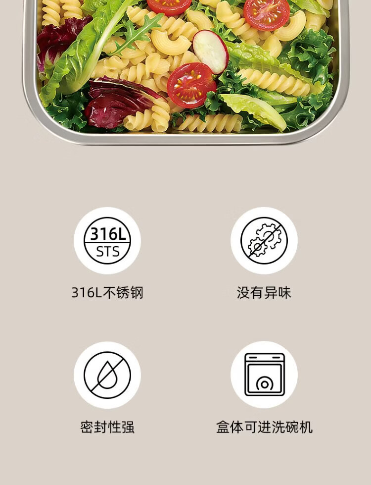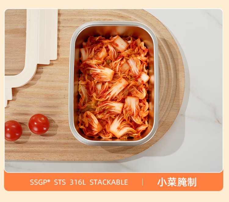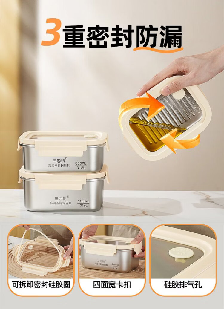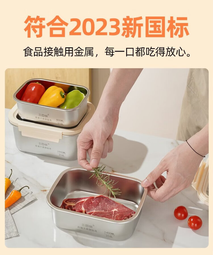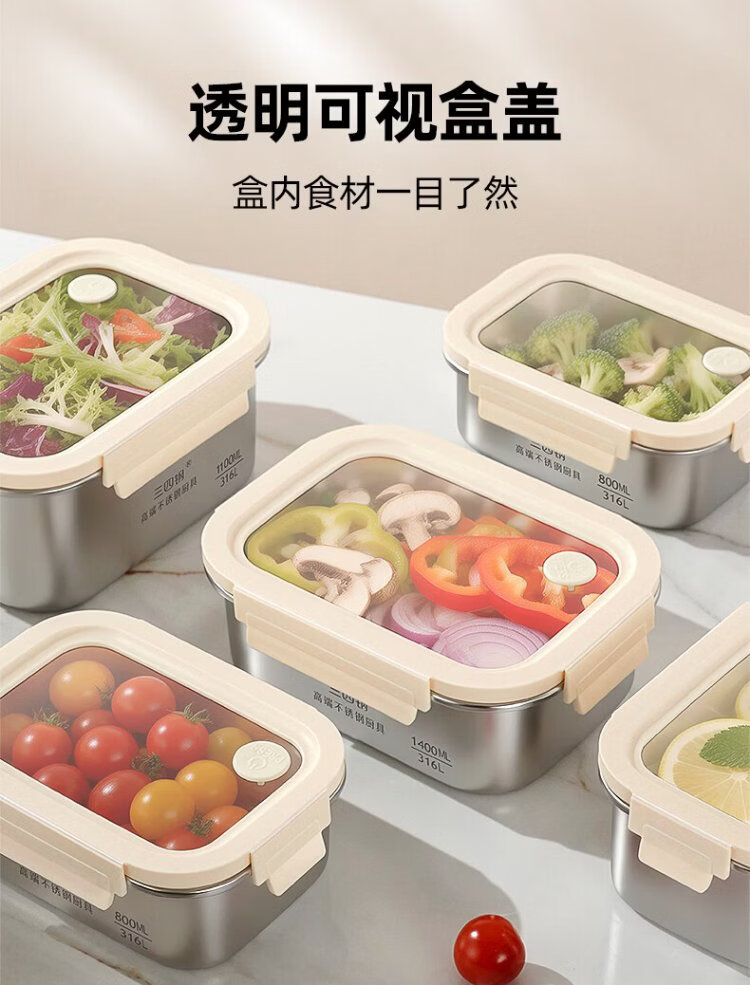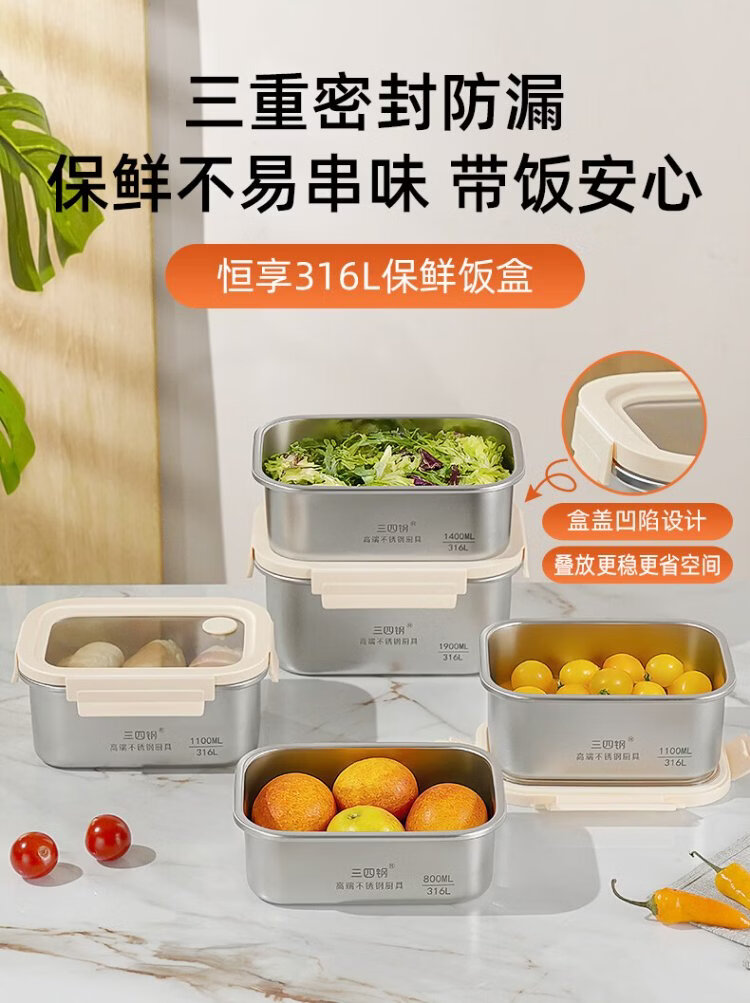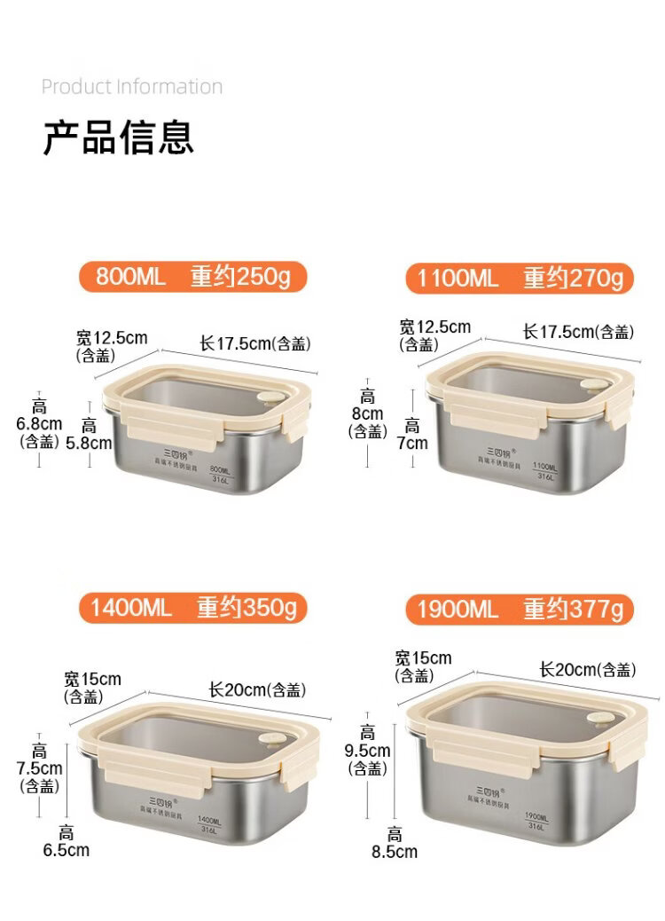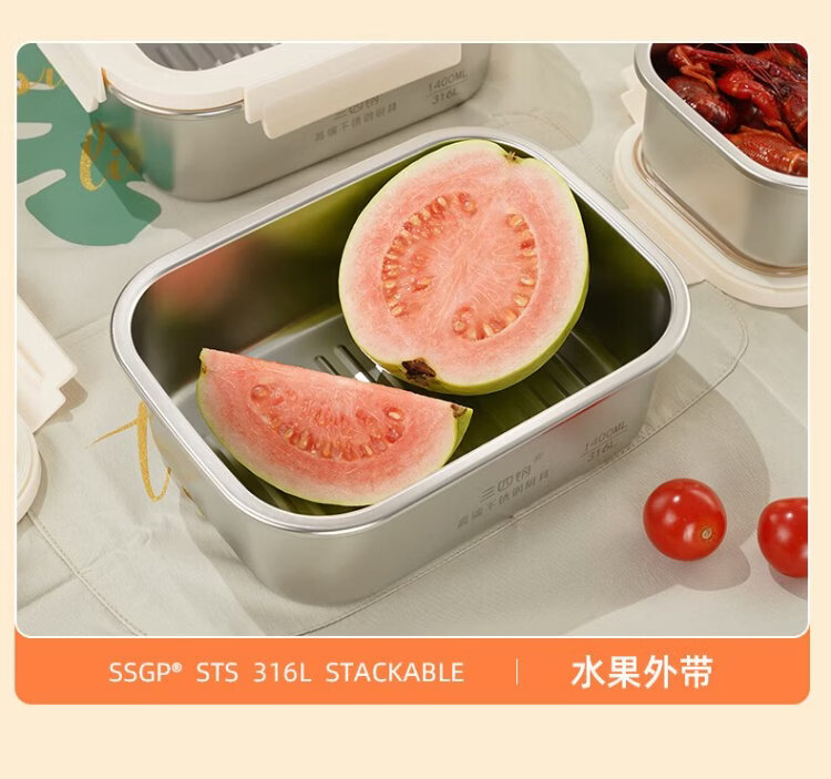 Sansi Steel crisper stainless steel lunch box 316L sealed lunch box fruit lunch box for primary school students 1100ml 38422