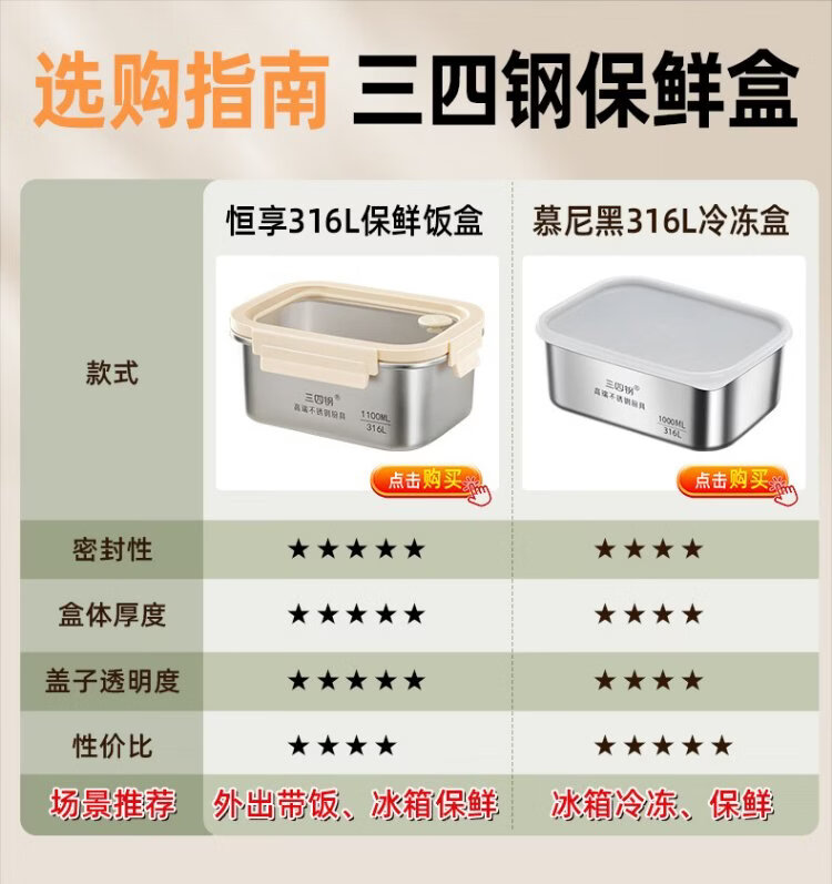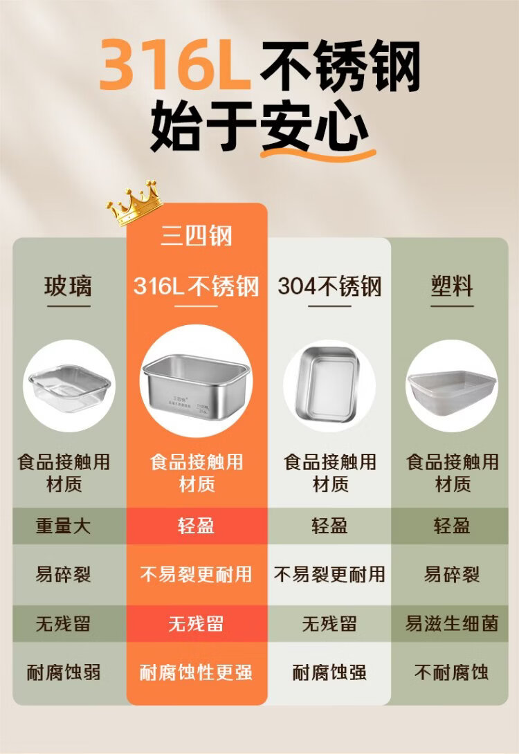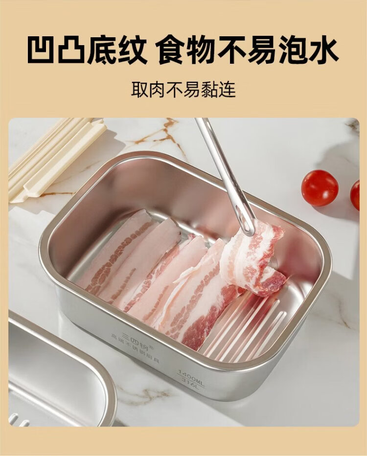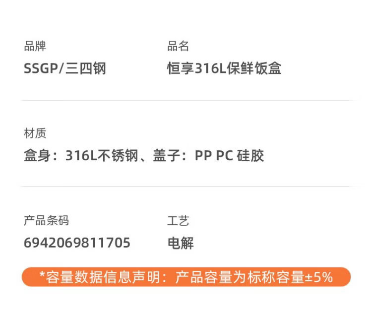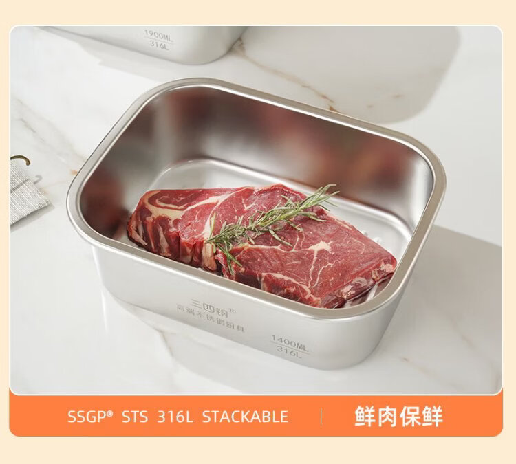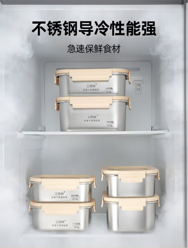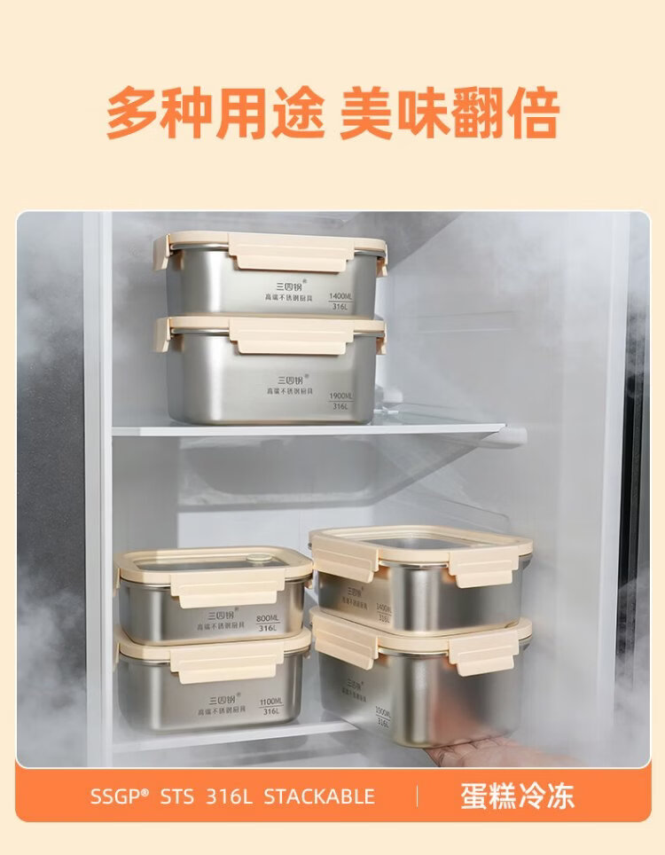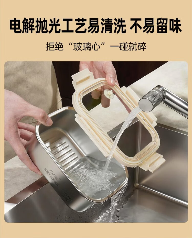 Sansi Steel crisper stainless steel lunch box 316L sealed lunch box fruit lunch box for primary school students 1100ml 38422