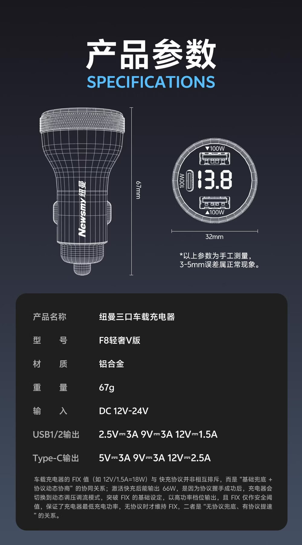 Newman (Newsmy) car charger with cable super fast charging one to three cigarette lighter conversion plug 100W high power car charger adapted for VIVO/IQOO Huawei Xiaomi Apple 16/17