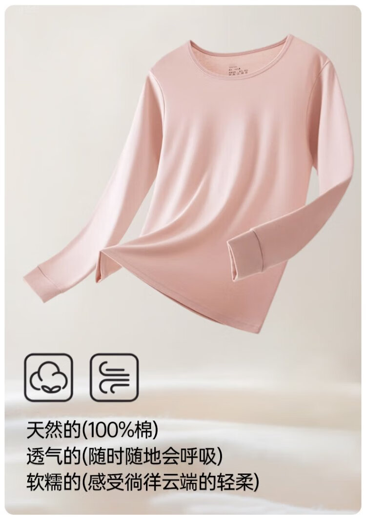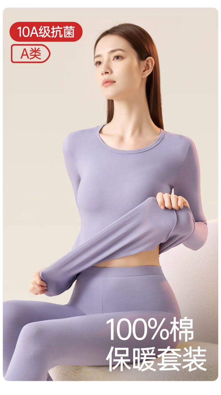 Modal 100% Cotton Autumn Clothes and Autumn Pants Women's Pure Cotton Round Neck Thermal Underwear Light Warm Suit Autumn and Winter Soft Cotton Basement