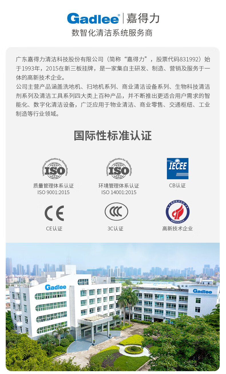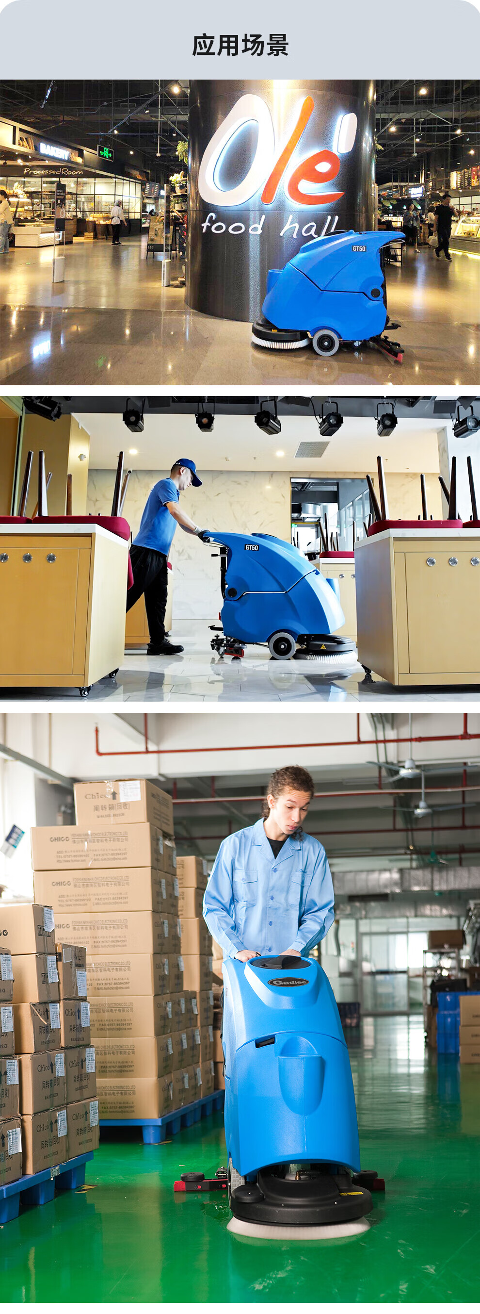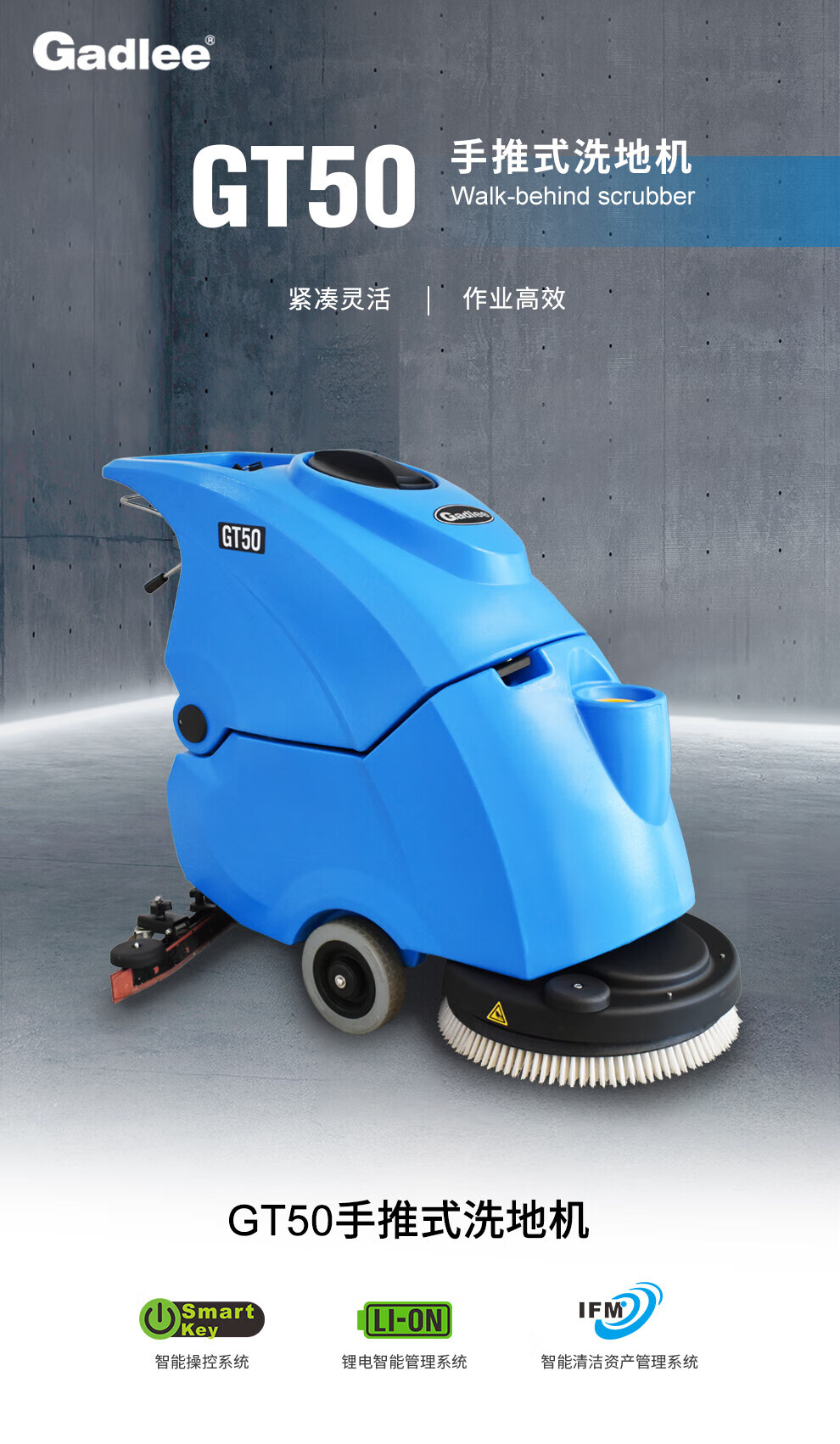 Gadlee GT50 hand push floor scrubber, suitable for shopping malls, hotels and supermarkets, flexible and quiet, lithium battery version