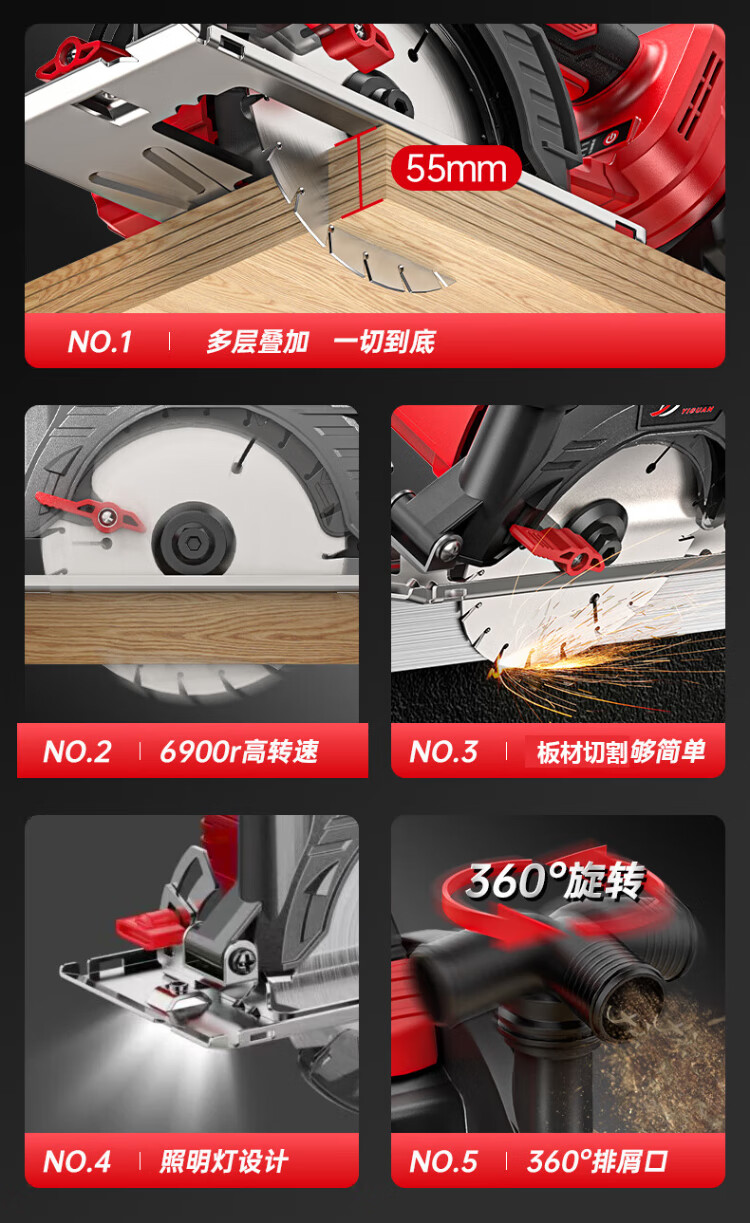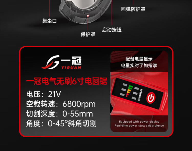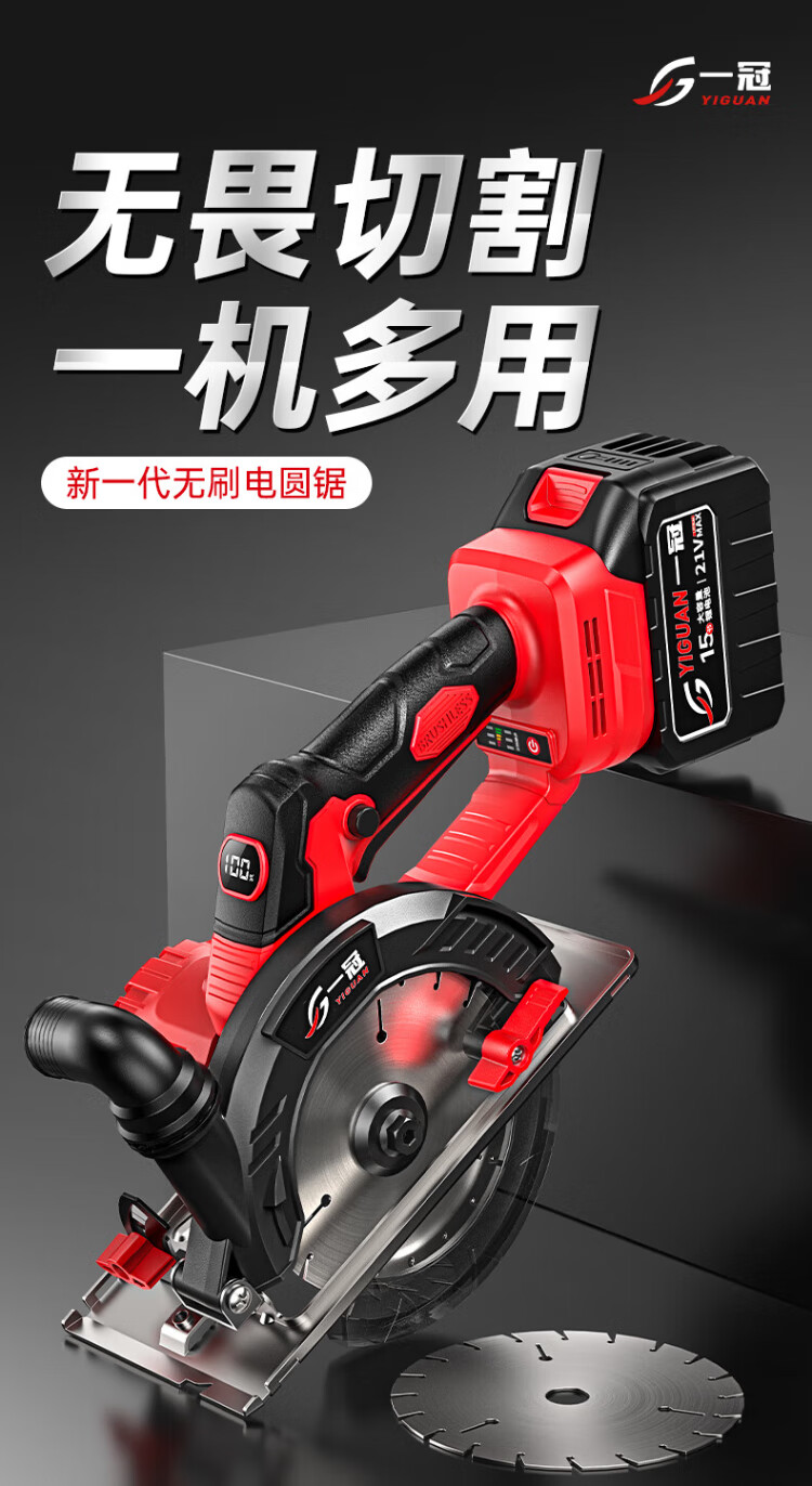 Yiguan electric saw rechargeable lithium electric saw electric circular saw circular saw hand electric saw cutting machine woodworking saw multi-function portable electric circular saw