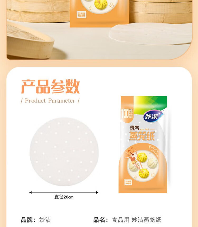 Miaojie steamer paper 100 sheets, disposable steamer paper, special paper for steamer, bun paper