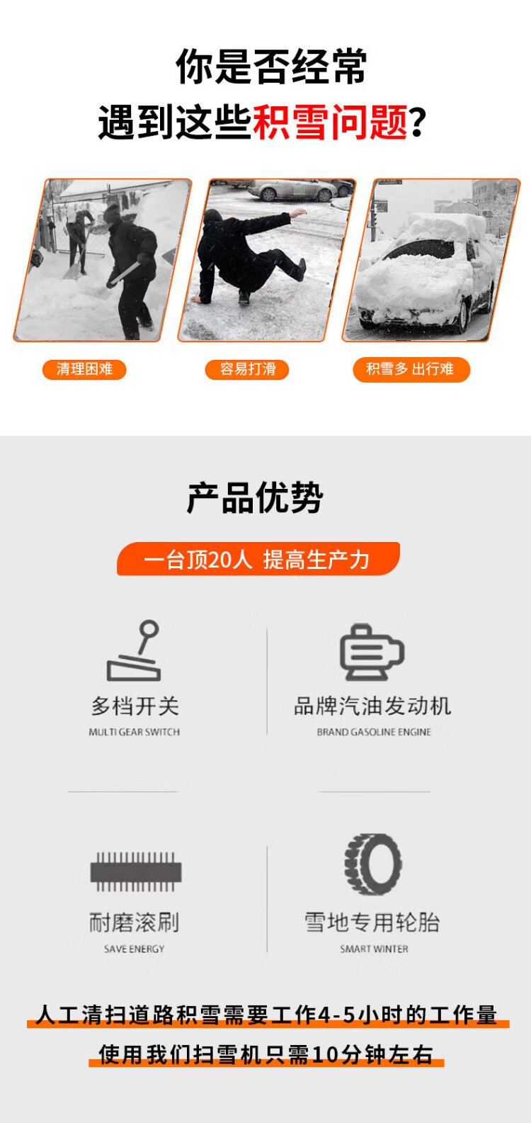 CHIGO hand-push snowplow highway road residential property snowplow municipal sanitation snowplow snowplow self-propelled snowplow snowplow S80 brush blade