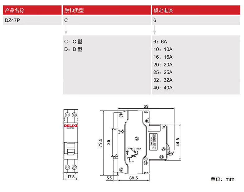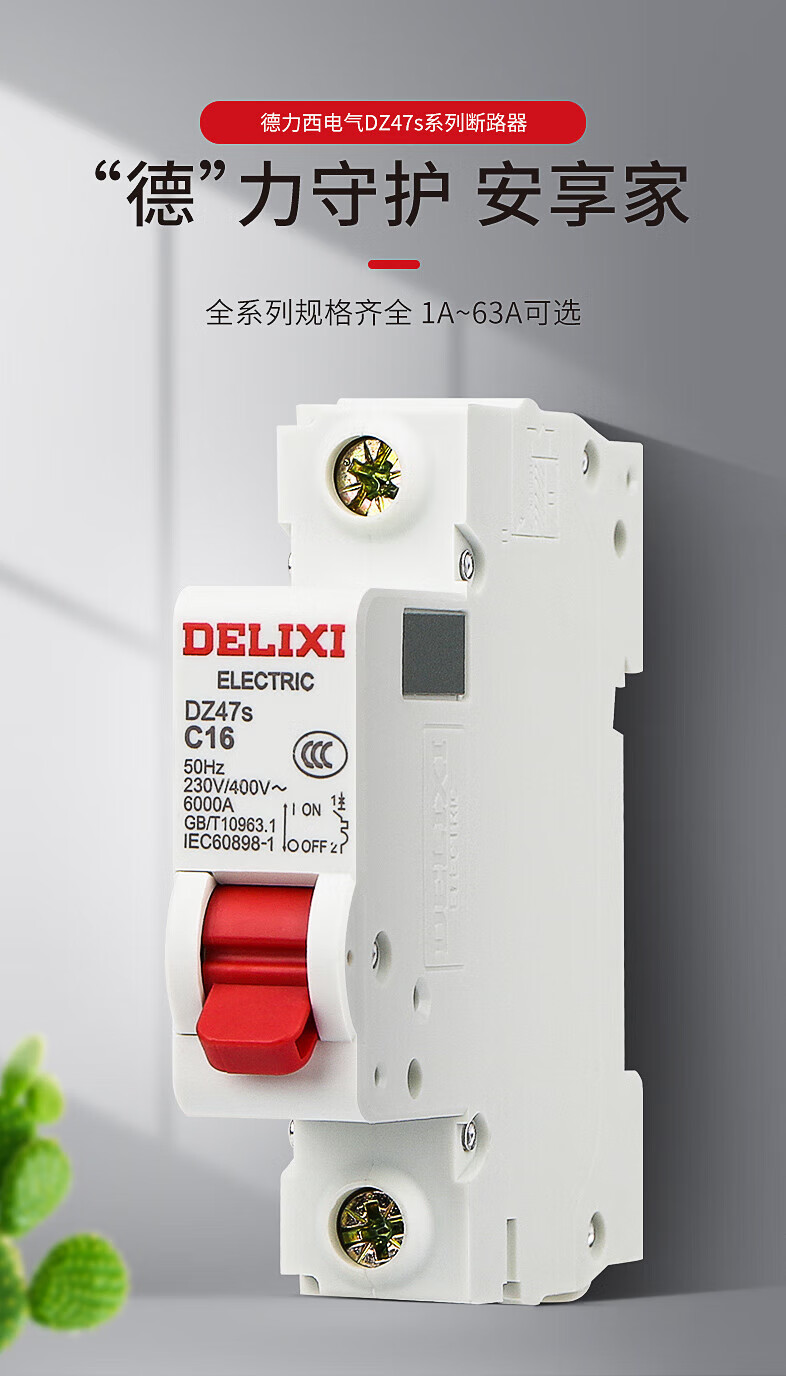 Delixi Electric Air Switch Circuit Breaker Household Air Switch DZ47s 2P C 63A