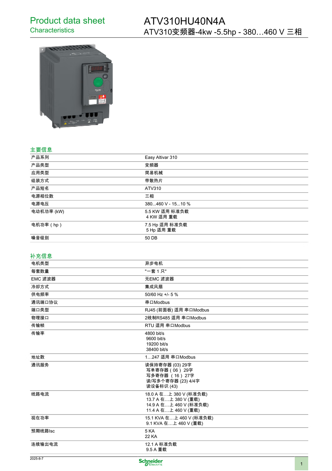 Schneider Electric ATV310 inverter 4kw three-phase ATV310HU40N4A