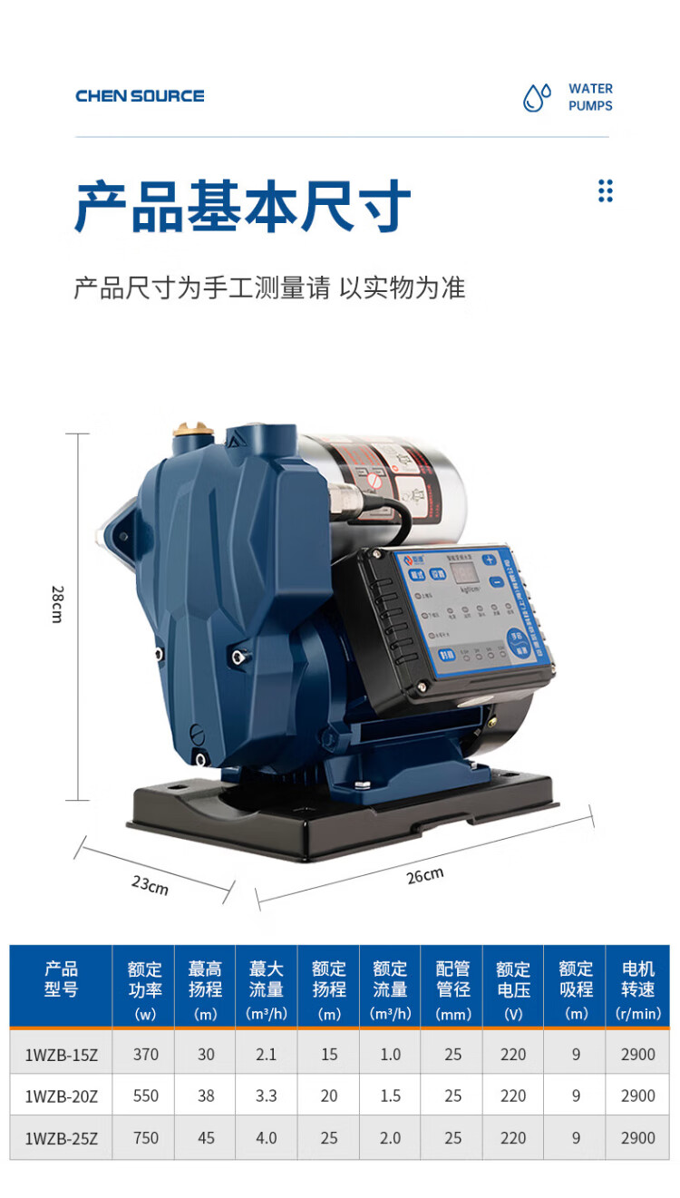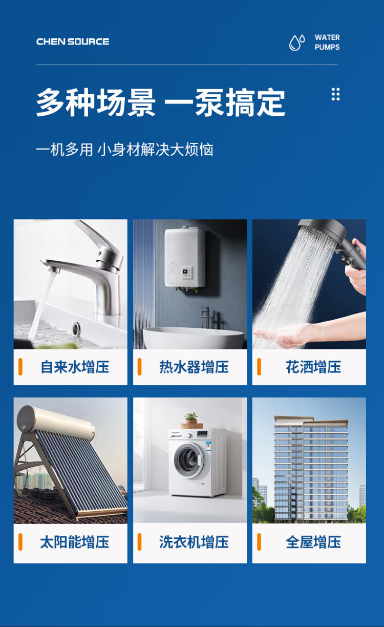 Chenyuan Intelligent Frequency Conversion Booster Pump Household Fully Automatic Frequency Conversion Pump Whole House Self-priming Pump Water Pipeline Pressurization Pump Intelligent Frequency Conversion Self-priming Pump 370W (Pressure Adjustable)