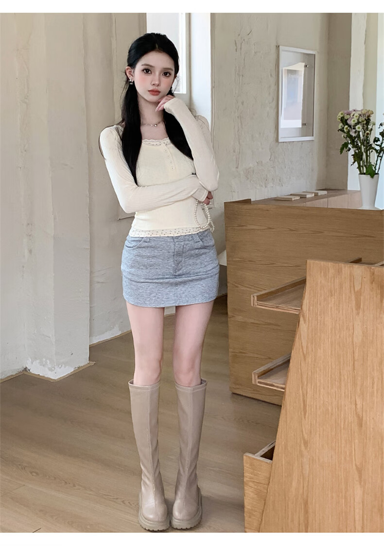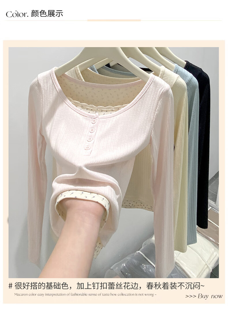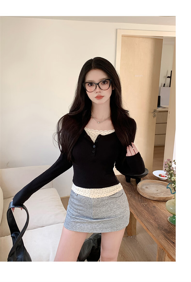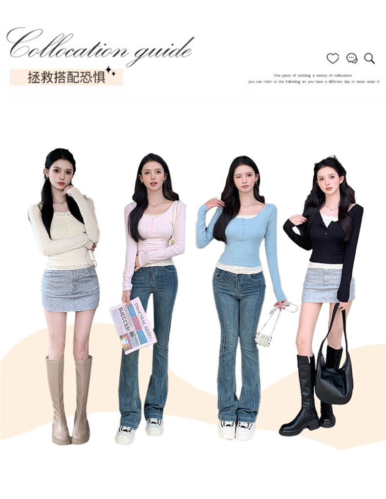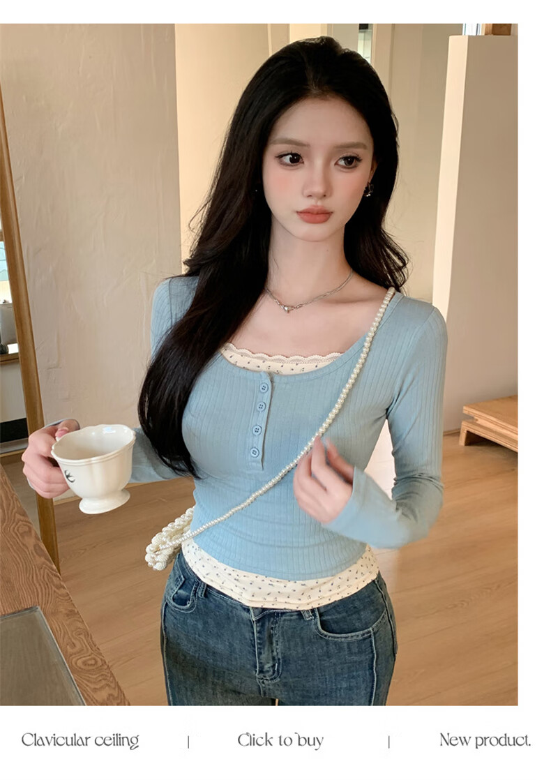 Langsha Floral Fake Two Piece Bottoming Shirt Women's Long Sleeve 2025 Autumn New Style Slim Fit Pure Sexy Hot Girl Lace Top
