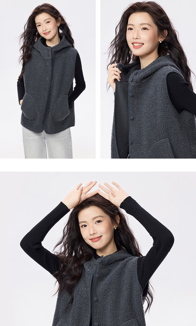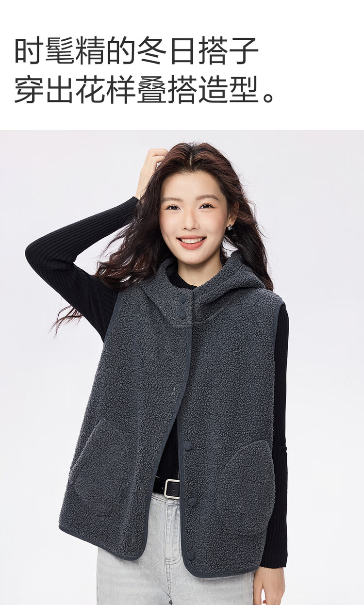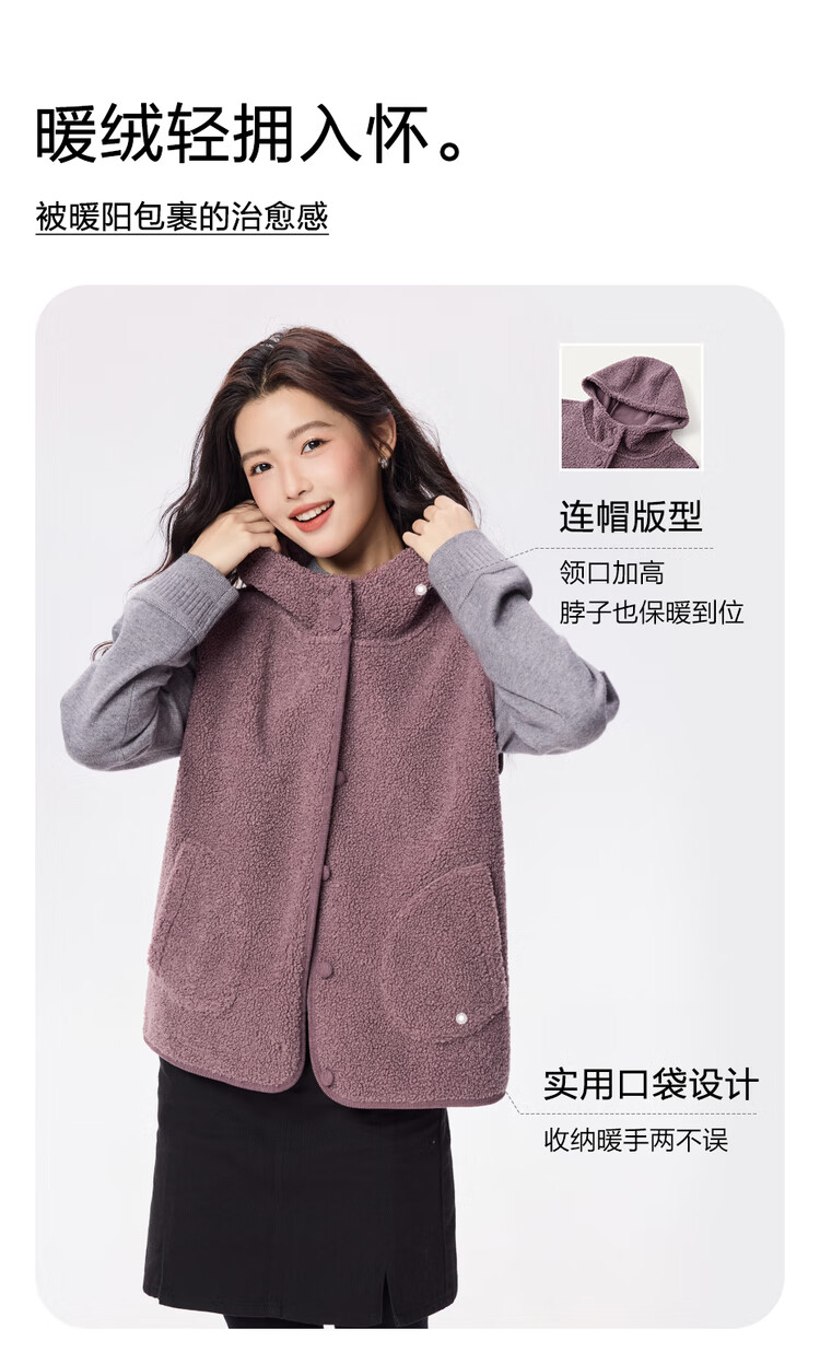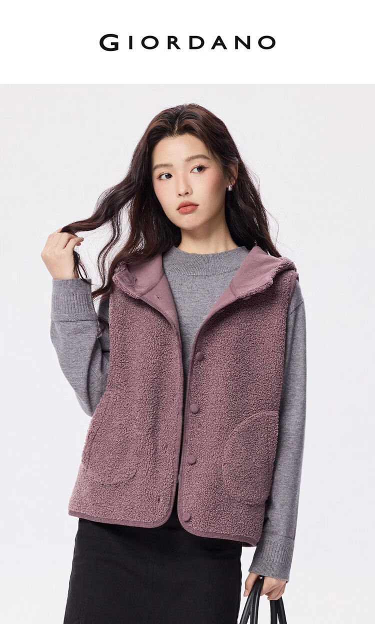 Giordano plush velvet vest for women autumn and winter new style Teddy velvet warm casual hooded vest jacket 05375869