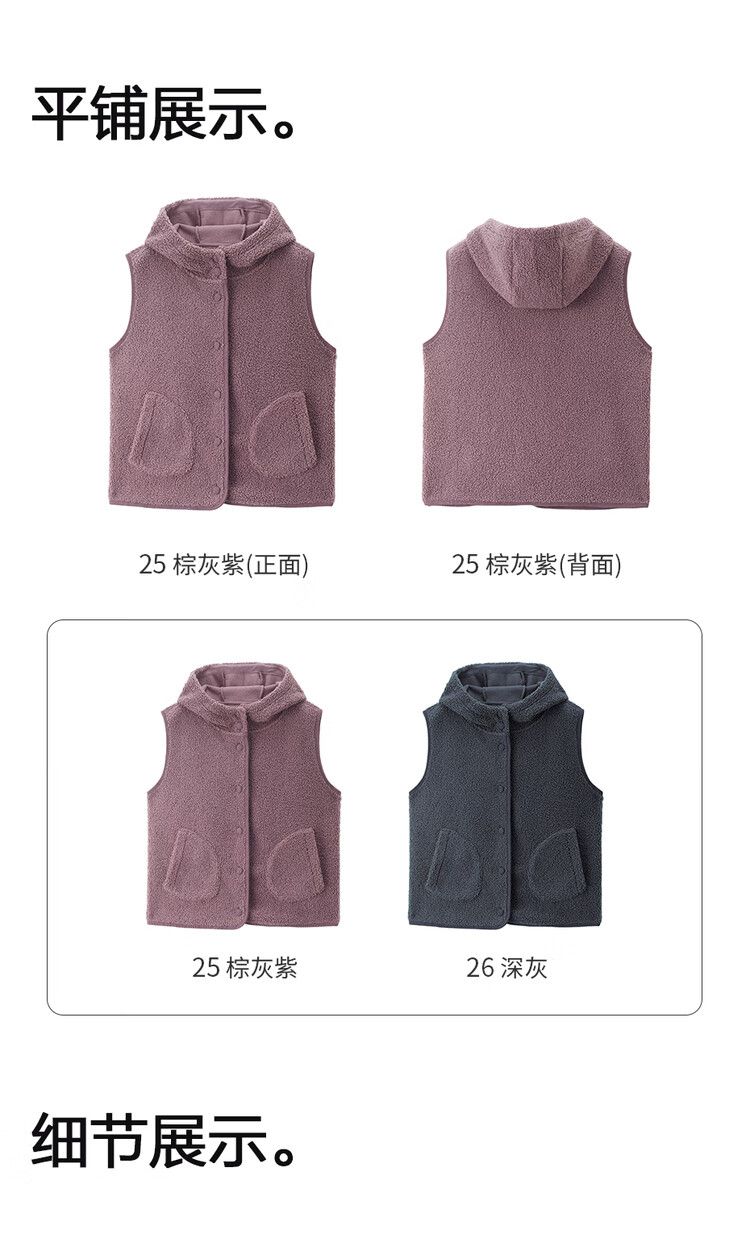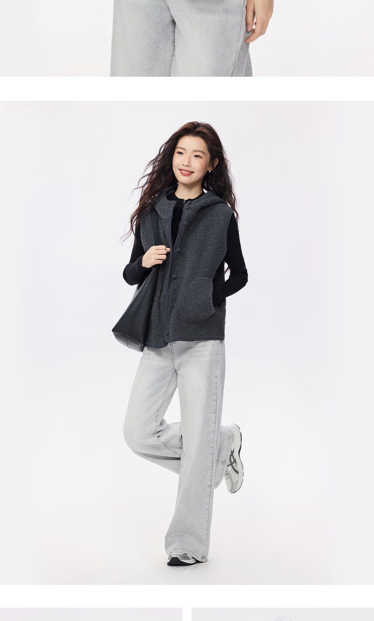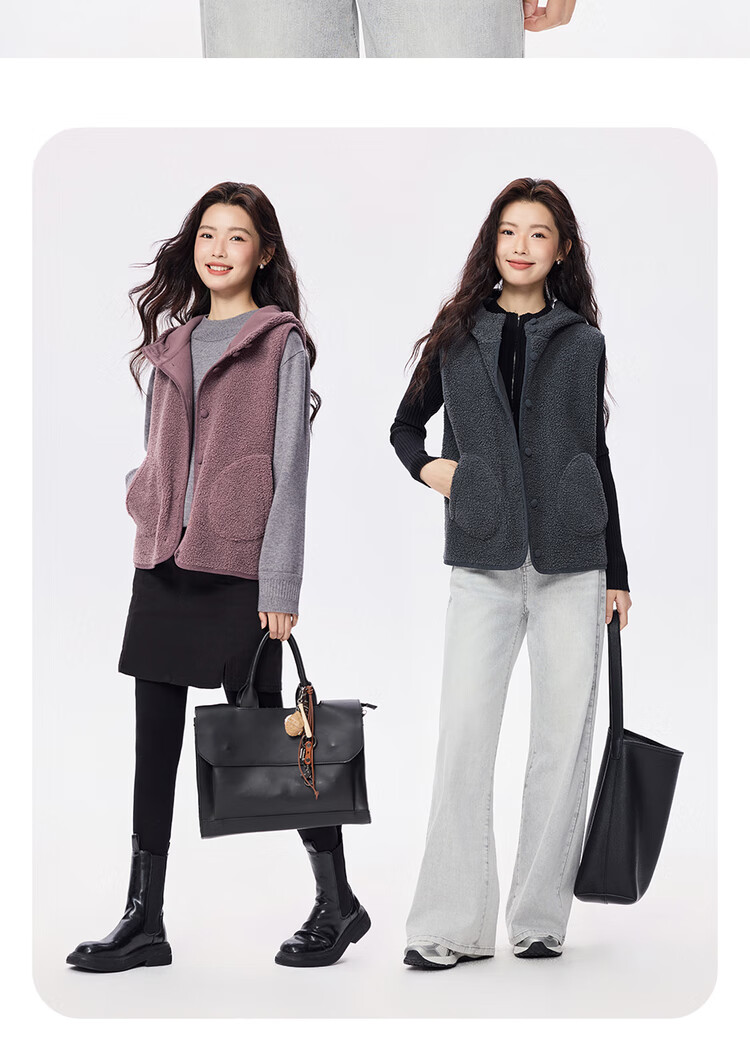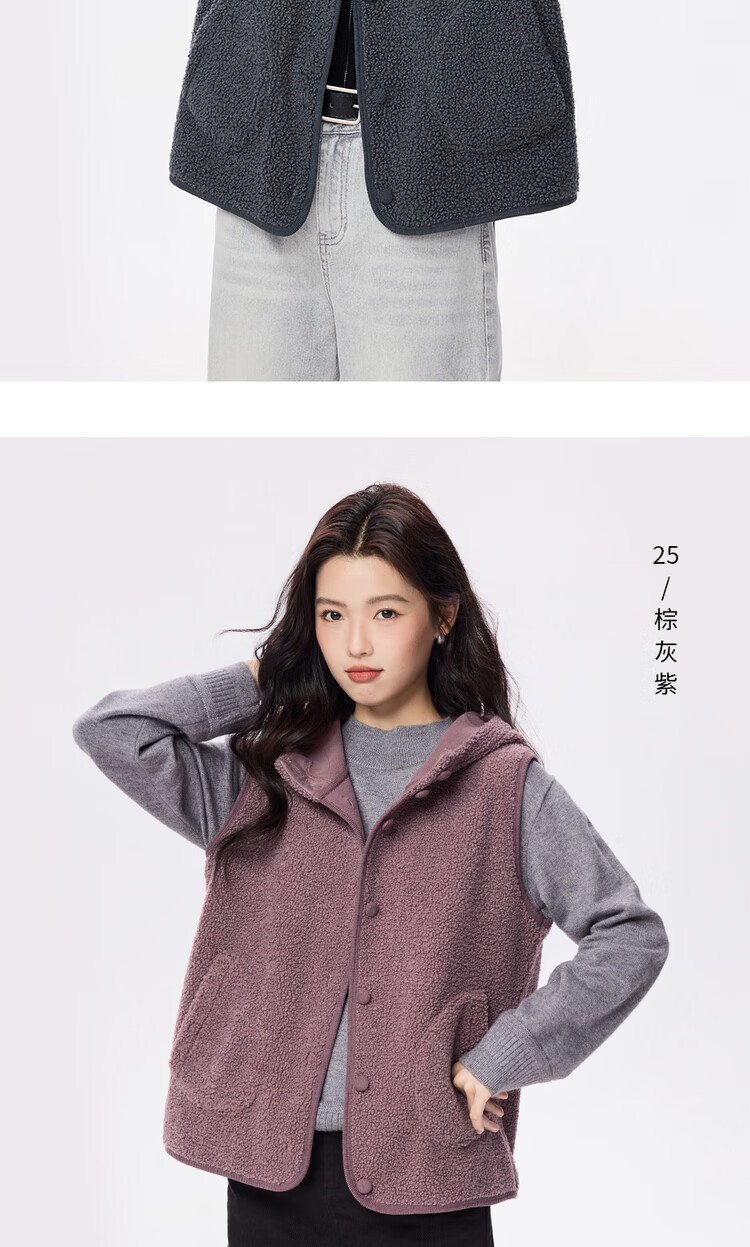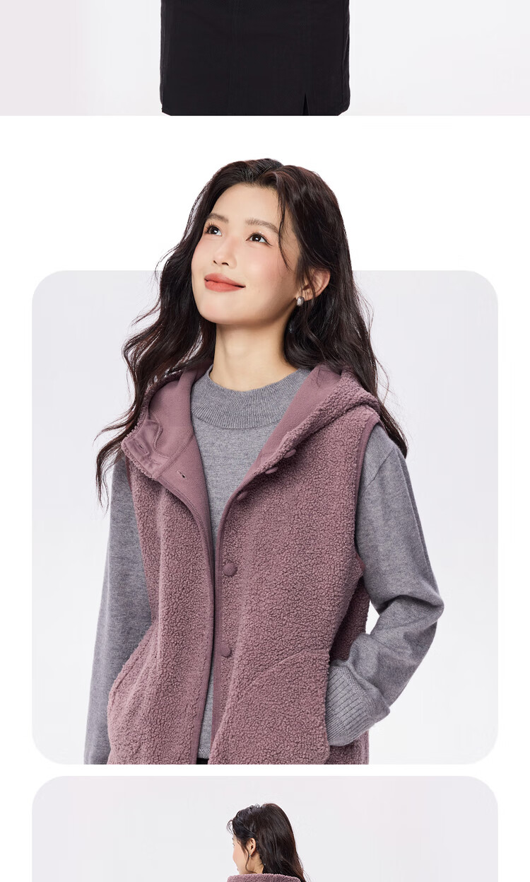 Giordano plush velvet vest for women autumn and winter new style Teddy velvet warm casual hooded vest jacket 05375869