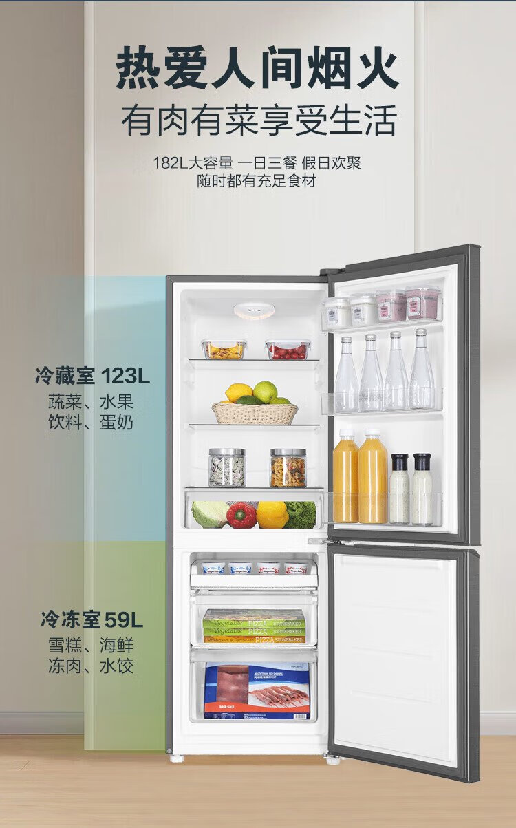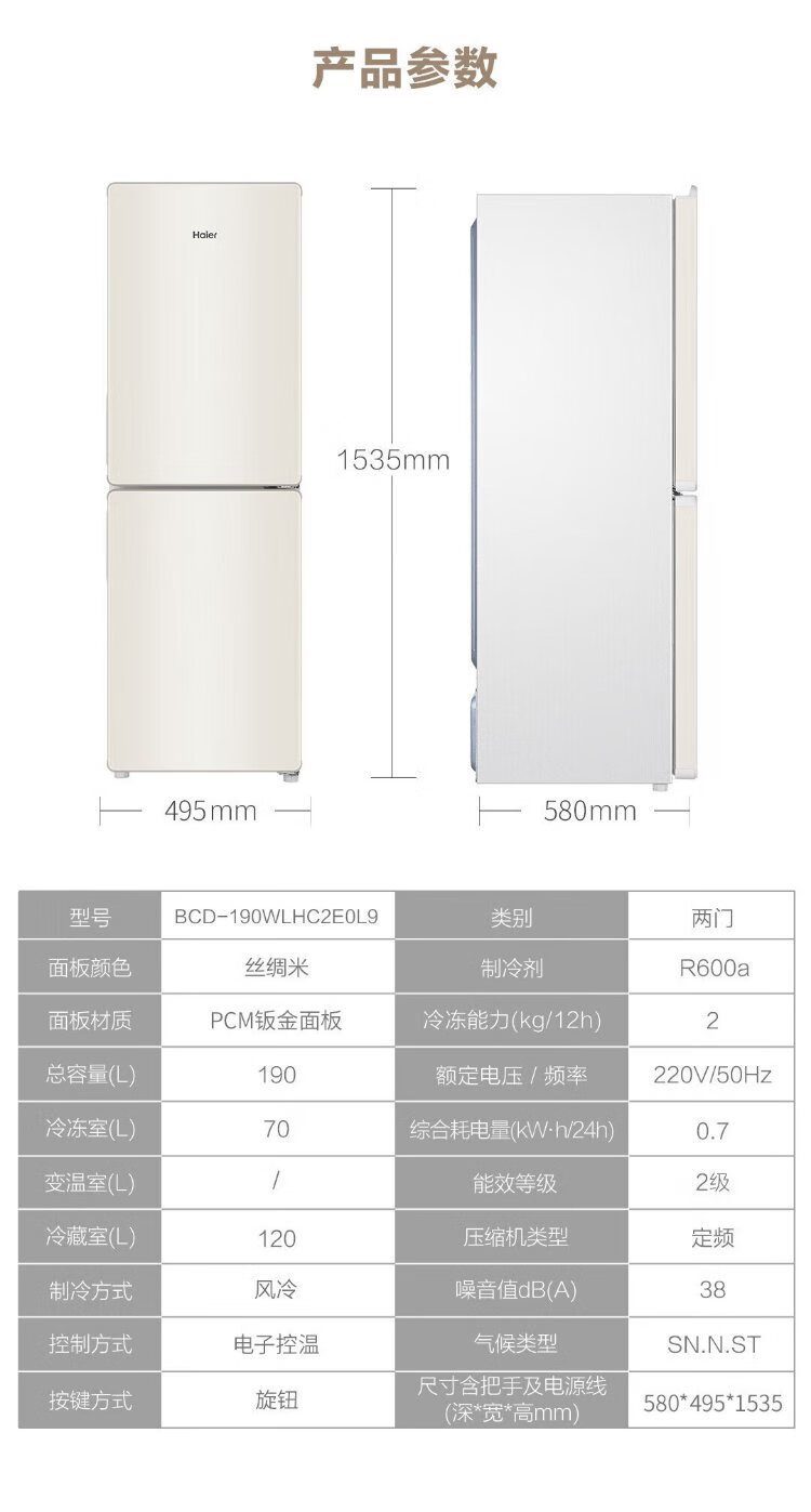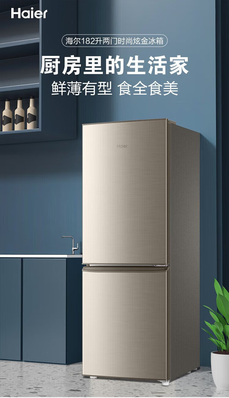 Haier refrigerator double door large capacity refrigeration and freezing energy saving a new level of energy efficiency small rental home 182 liter double door refrigerator double door top model 182 liter direct cooling energy saving level 2
