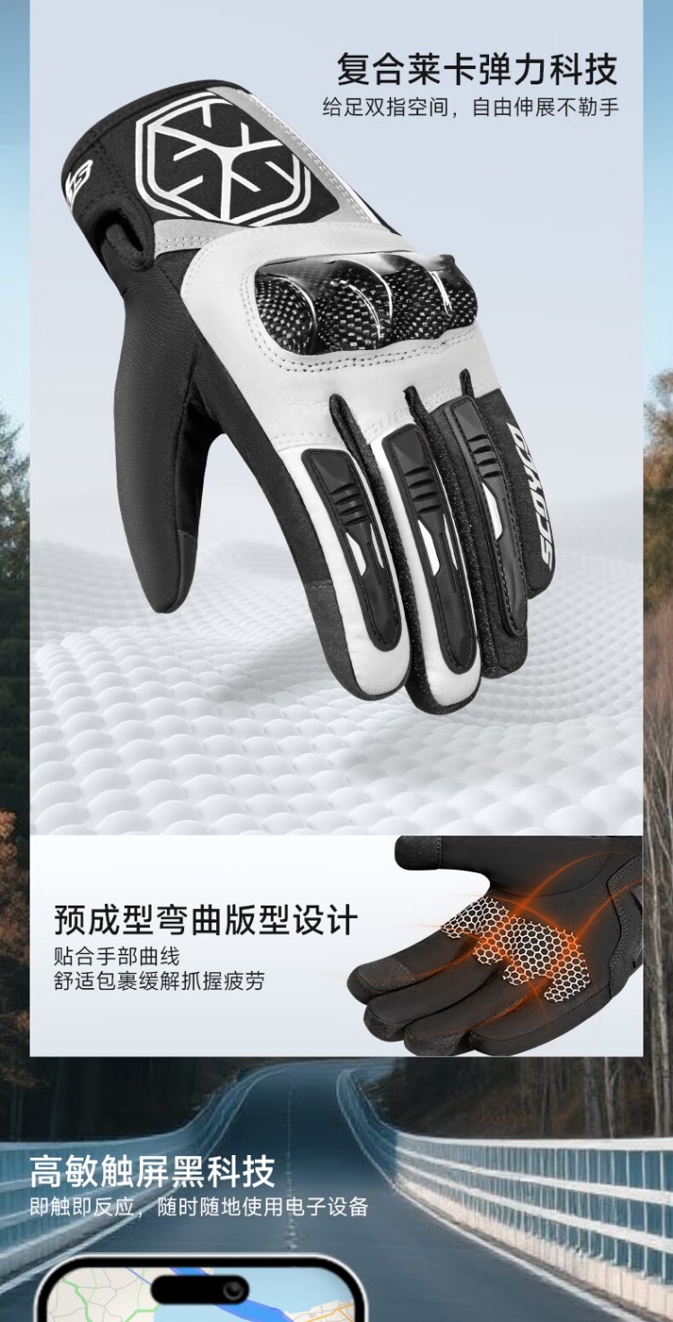 SCOYCO carbon fiber protective windproof, coldproof, warm and waterproof commuter palm protector touch screen autumn, winter and spring racing cycling gloves for men and women