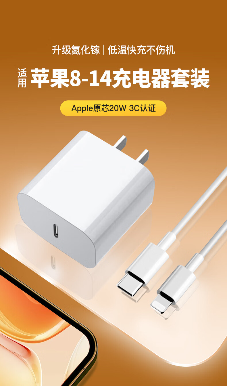 Baking Apple charger charging cable set suitable for original iPhone14ProMax13pro12/11plus mobile phone charging head data cable fast charging set iPad tablet