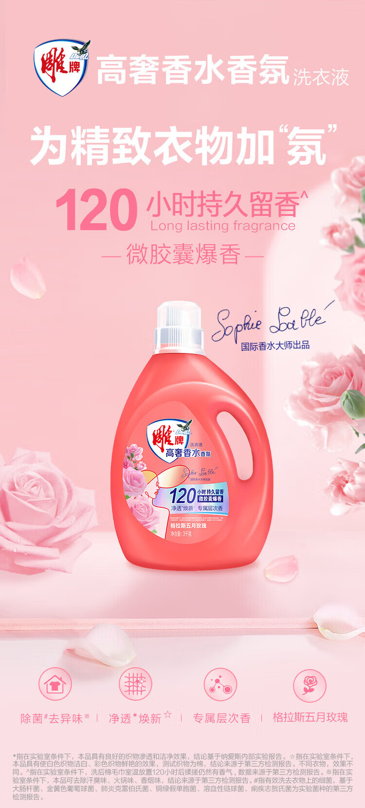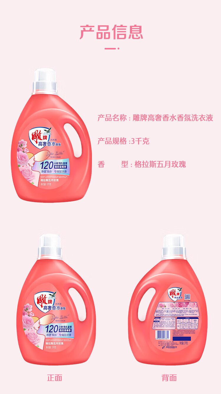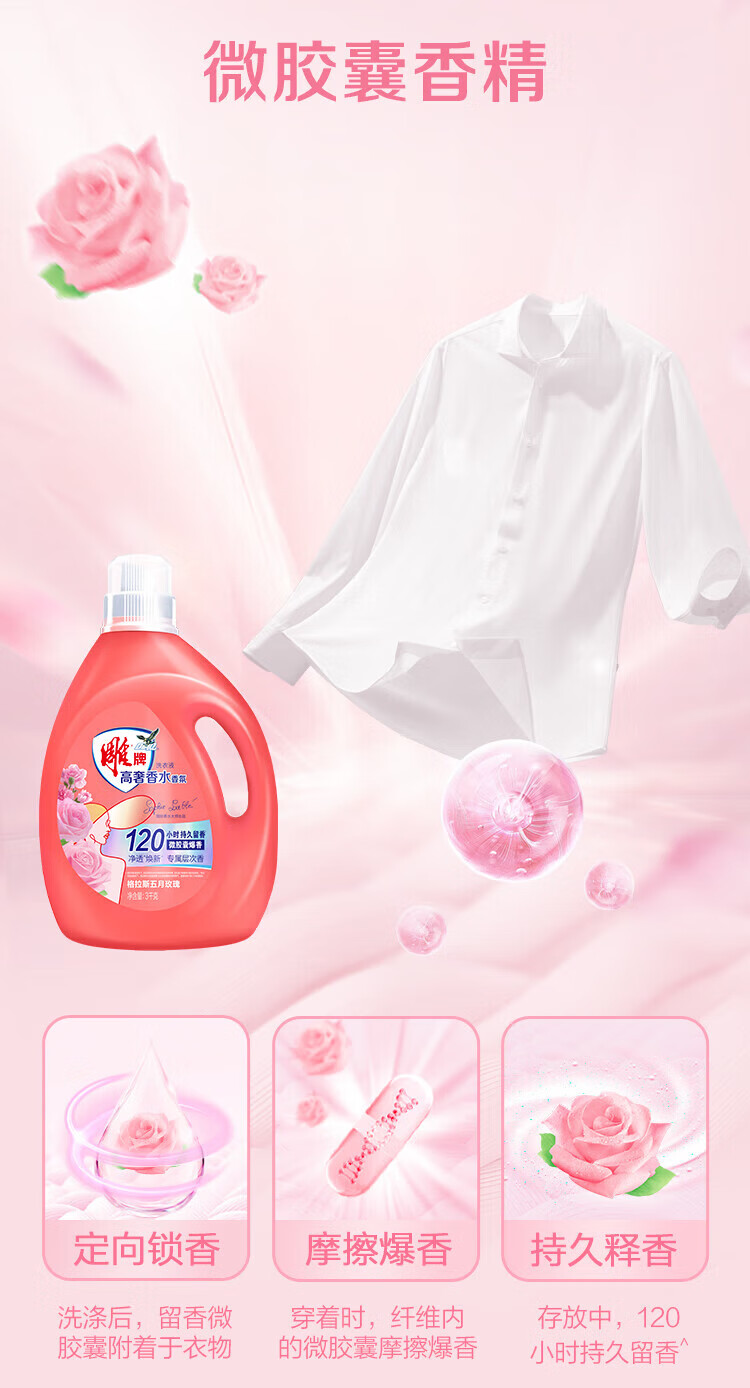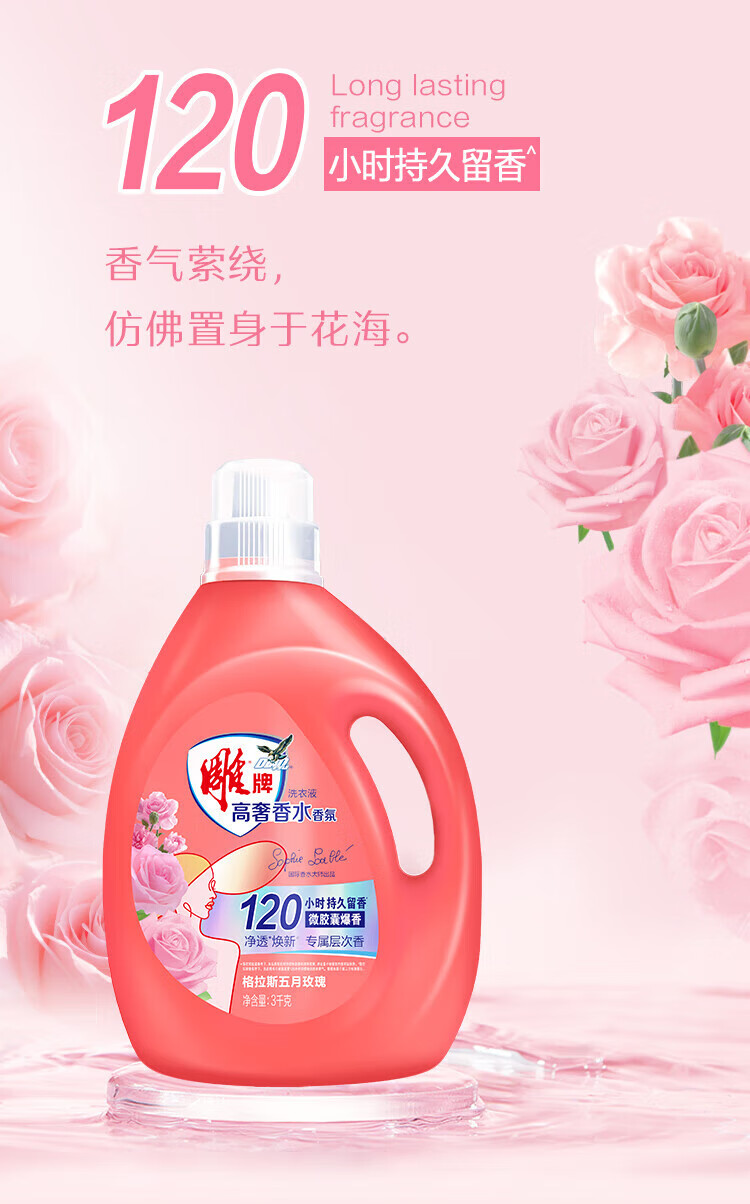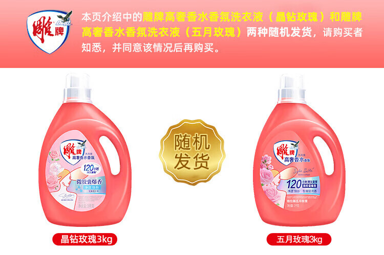 Diaopai High Luxury Fragrance May Rose Fragrance 3kg*1 bottle of sterilizing and odor-removing microcapsule laundry detergent on clearance
