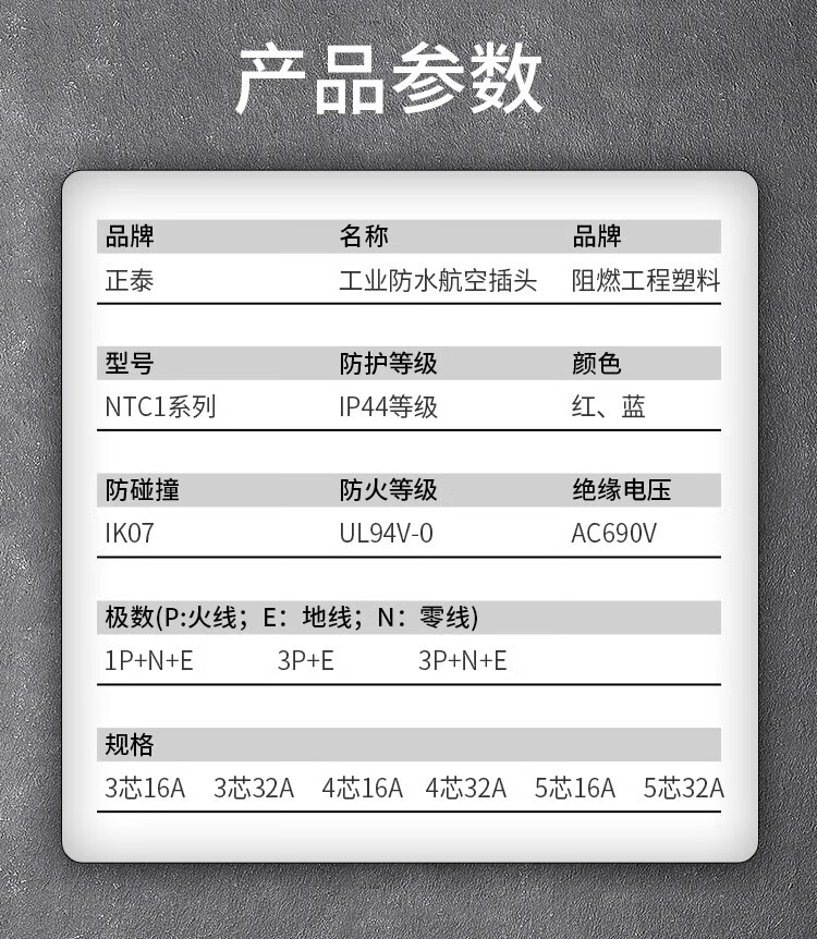 Chint Aviation Industry Plug 5-pin 32A socket connector three-phase high-power waterproof NTC1-532P6h/415V plug environmentally friendly