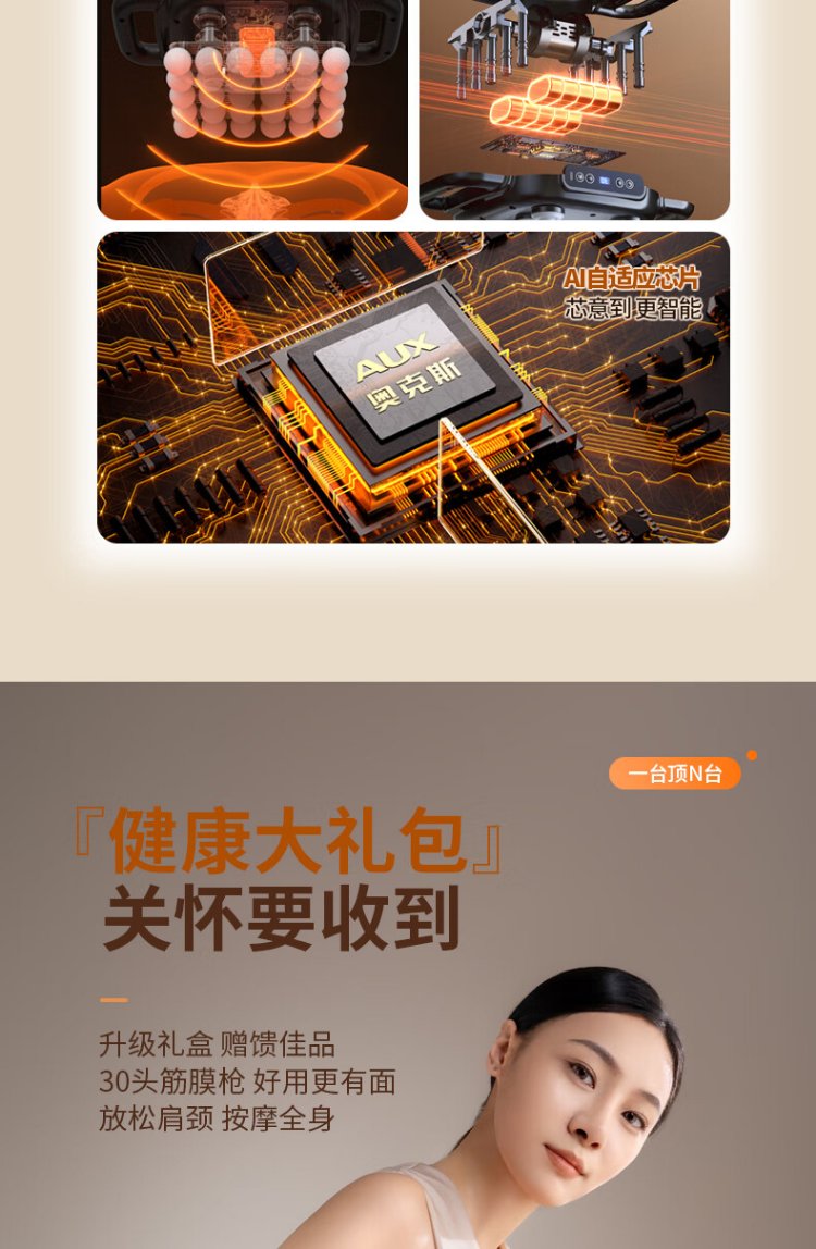 AUX fascial gun (30 heads in gift box) 74DP34 professional-grade multi-head, shoulder, cervical spine, back, and leg massager, whole body home massager, birthday, New Year's Day, and New Year's gift