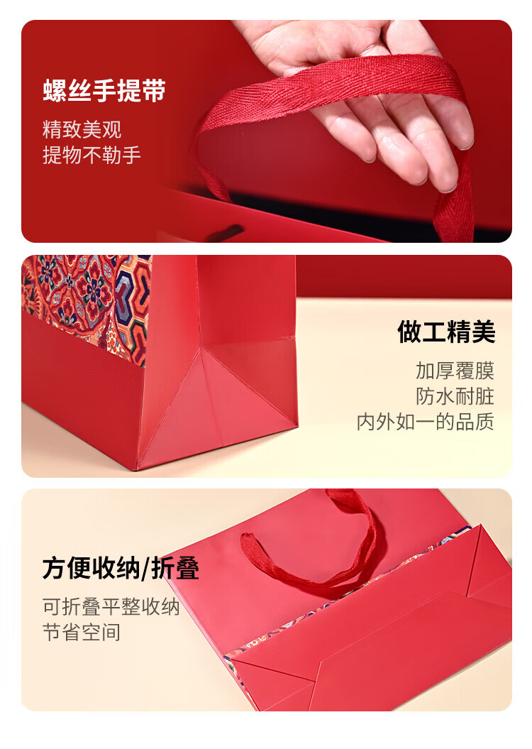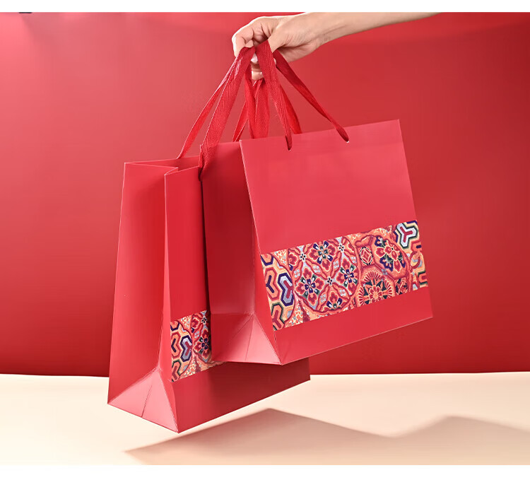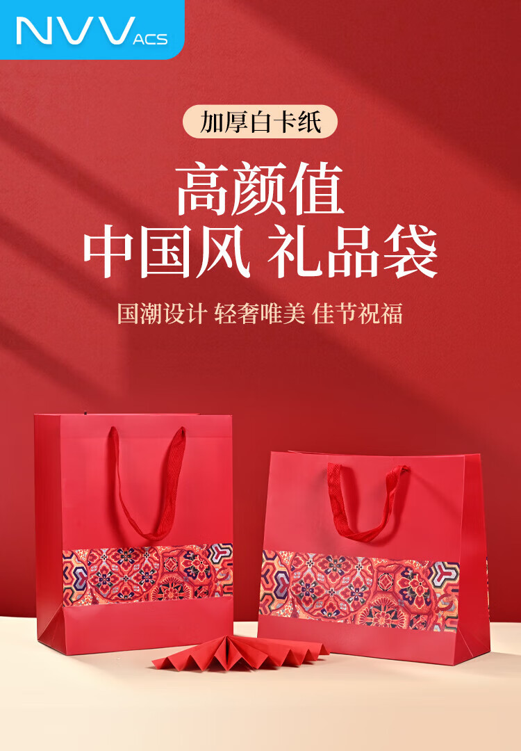 NVV red gift bag, handbag, high-end packaging bag, birthday tea, tobacco, wine, wedding celebration gift bag, return gift bag, horizontal section 30*12*27cm, 5 pieces