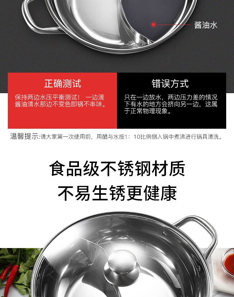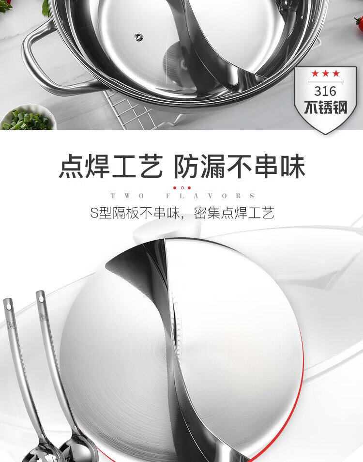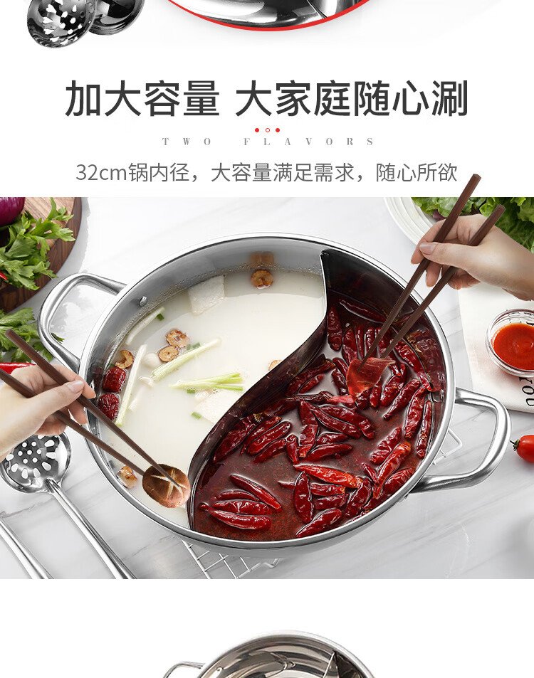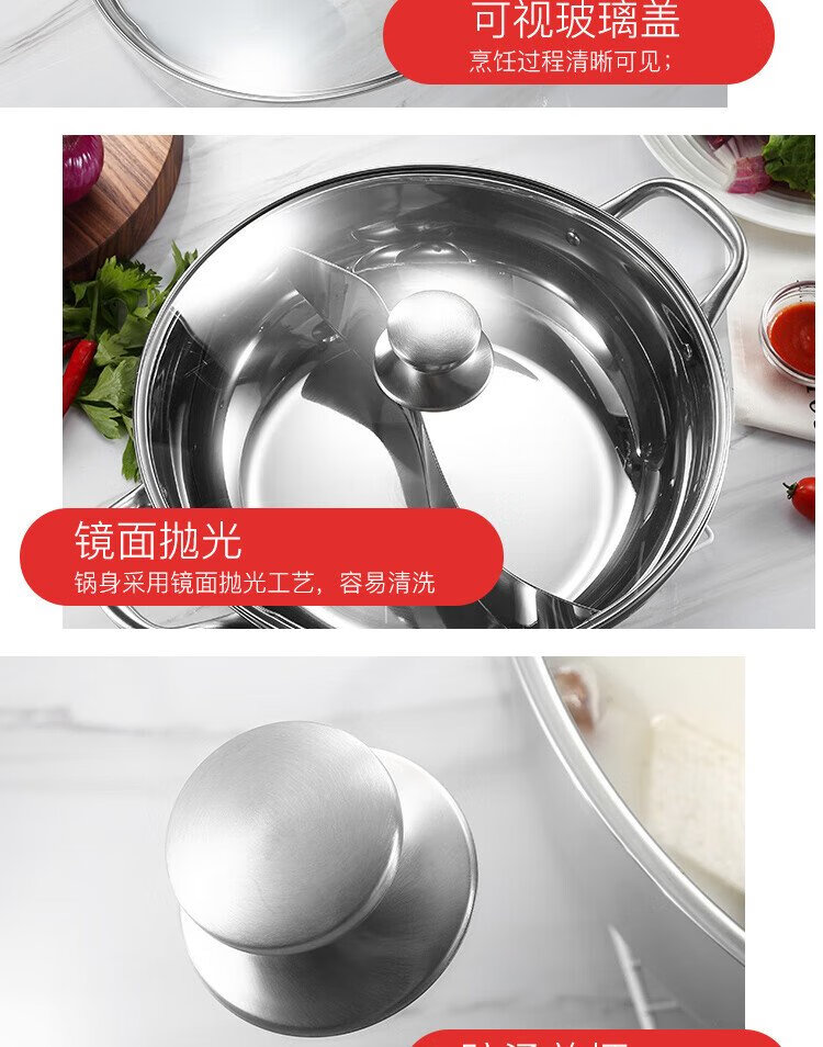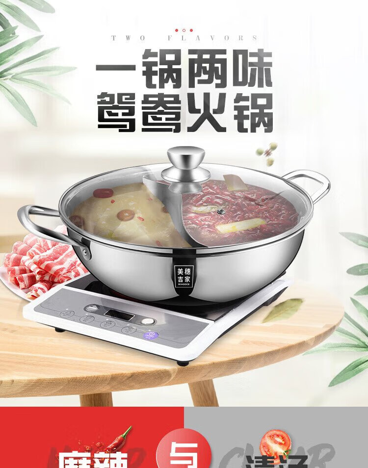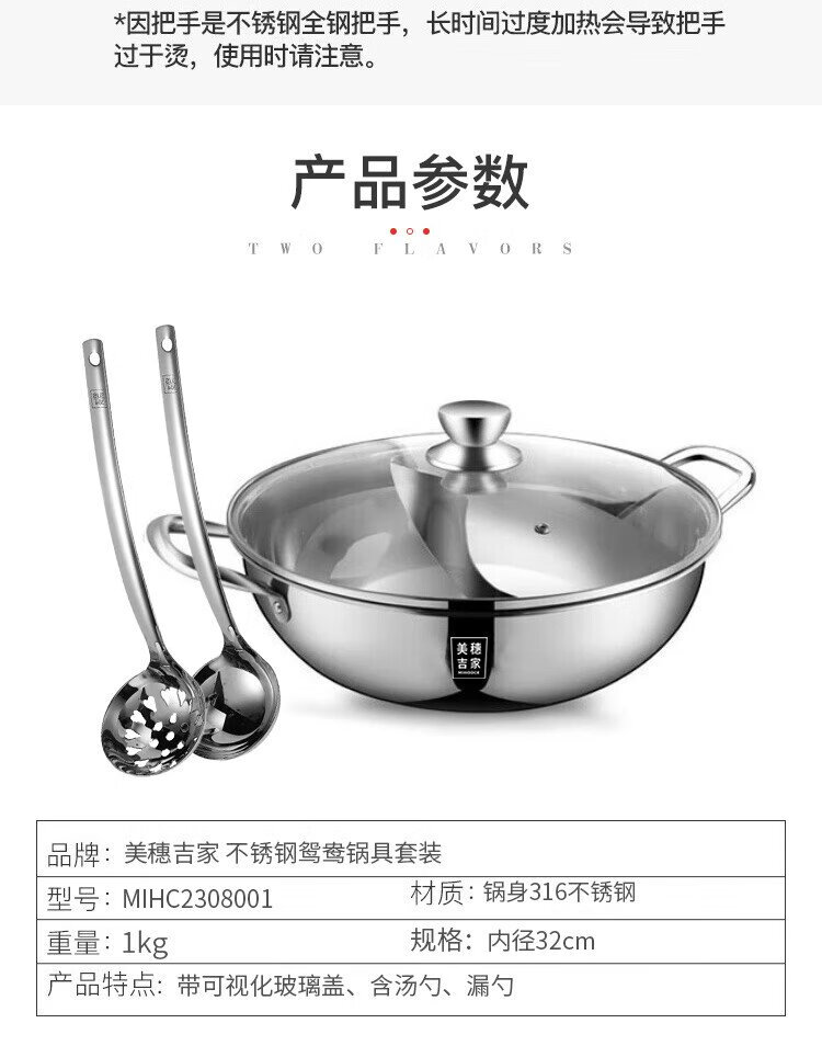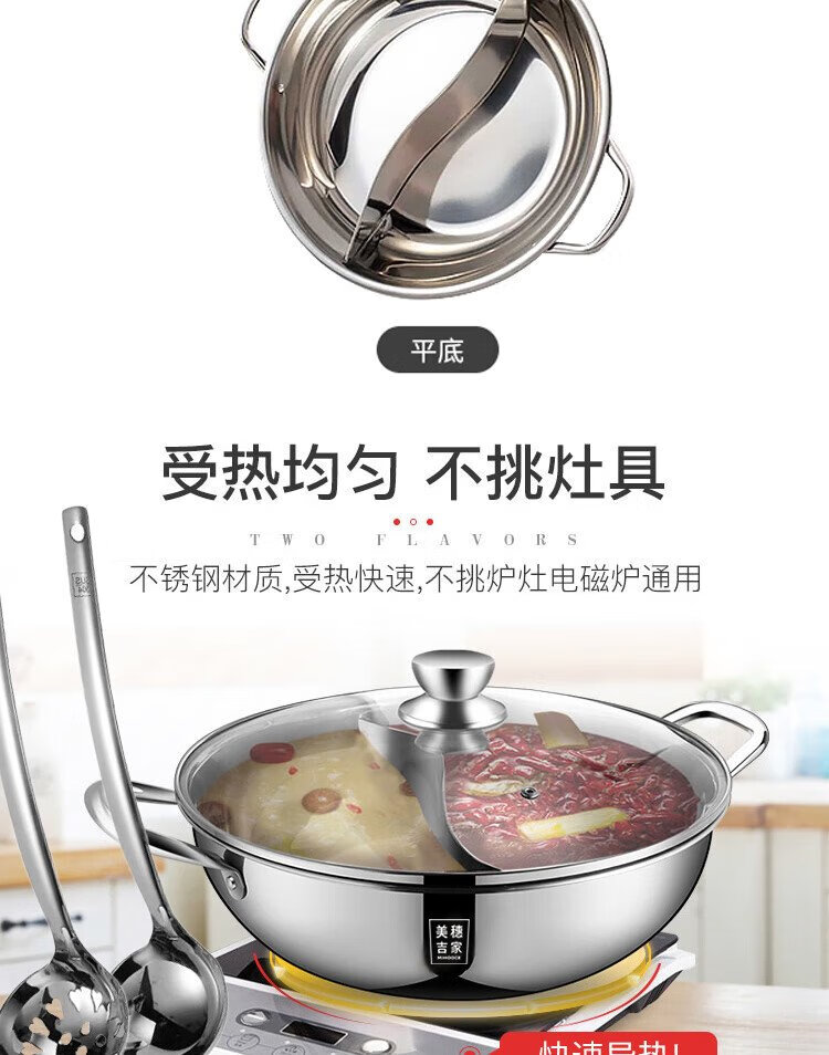美穗吉家(mihooce)不锈钢鸳鸯锅具套装家用锅汤锅商用 自营