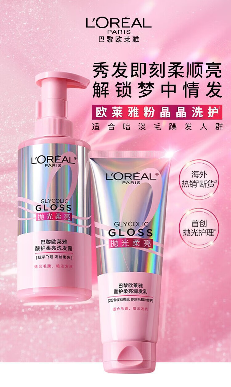 L'Oreal Rose Quartz Shampoo Shiny, Smooth, Improves Dry Frizz and Damaged Care 80ml Trial Travel Size