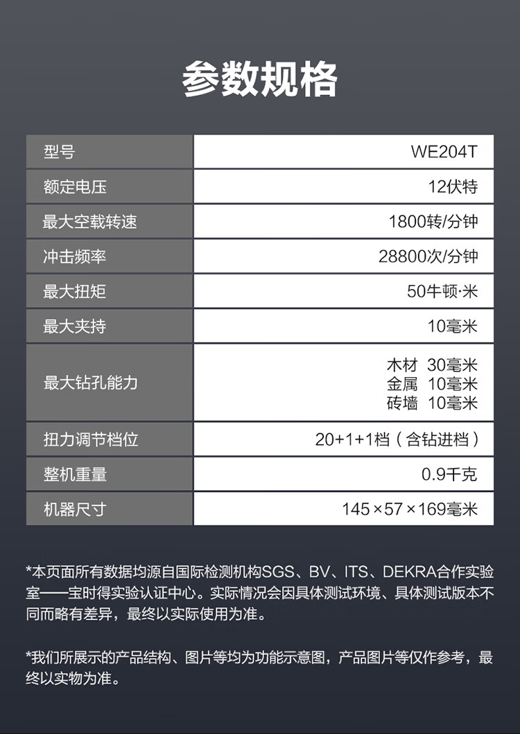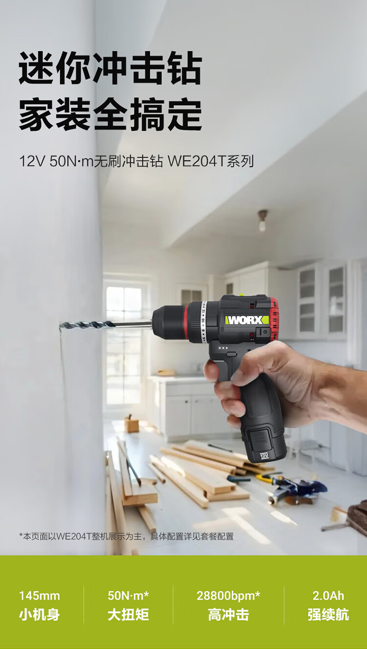 Vickers 12V 50N brushless electric drill hand drill WE204T (2.0 single electric) impact drilling wall drilling electric screwdriver