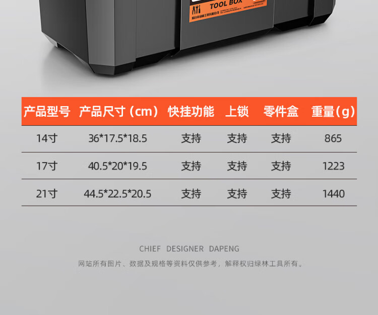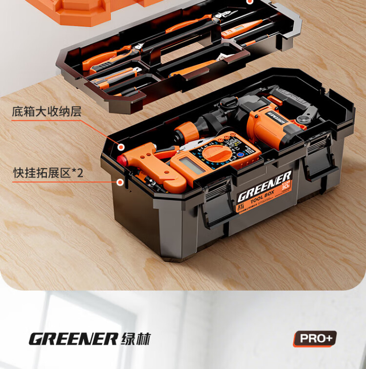 GREENER 14-inch tool box storage box hardware large industrial-grade household portable car multi-function maintenance electrician