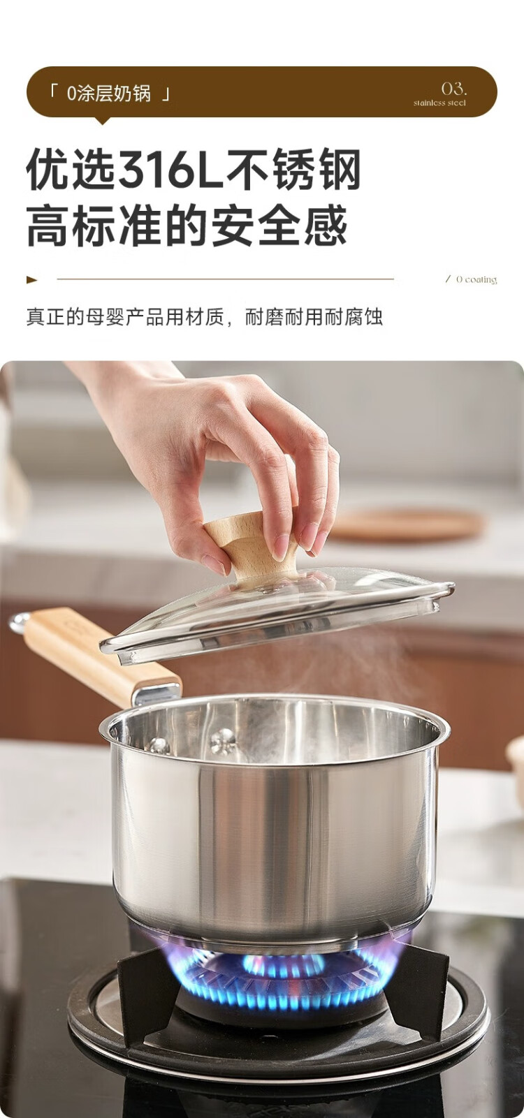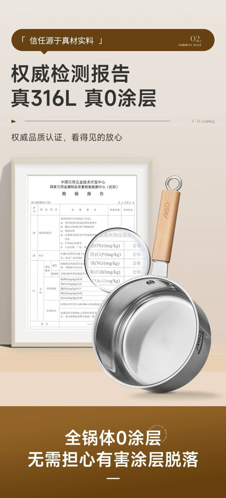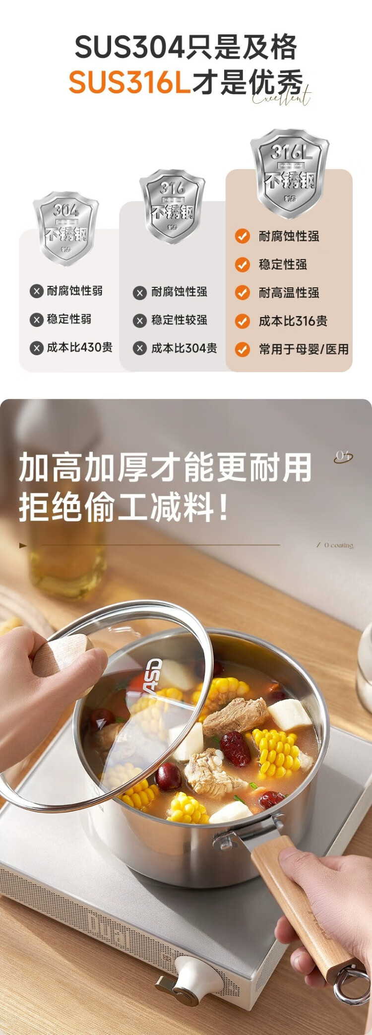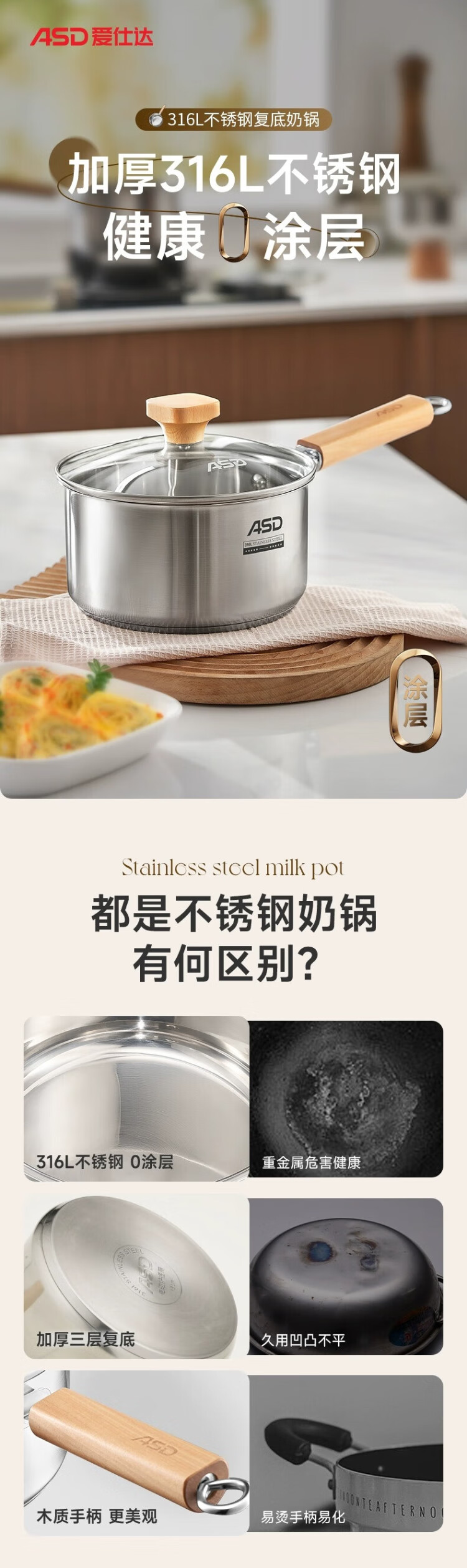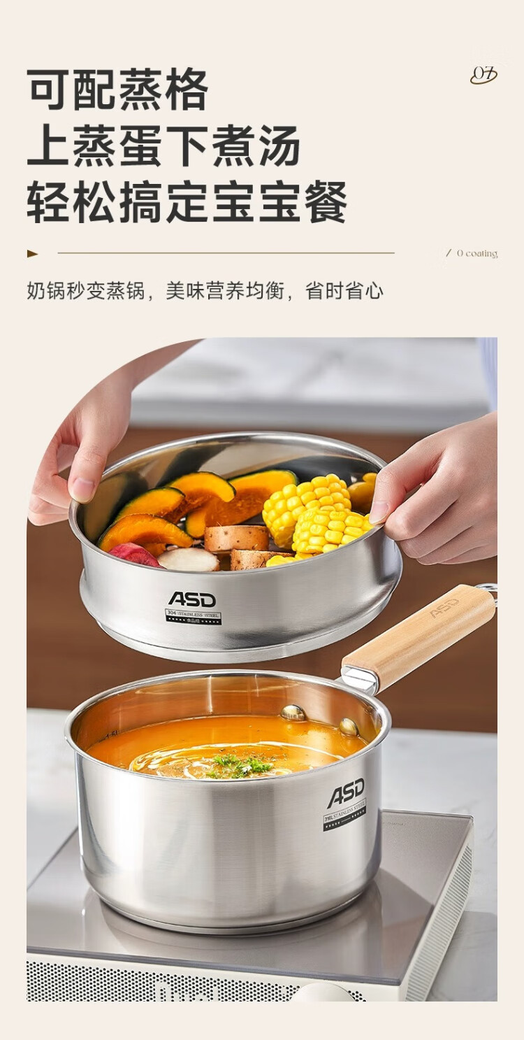 ASD (ASD) 316L stainless steel milk pot 20CM + 304 stainless steel steaming grid
