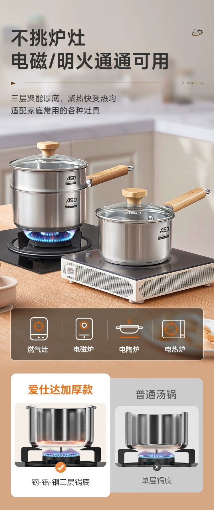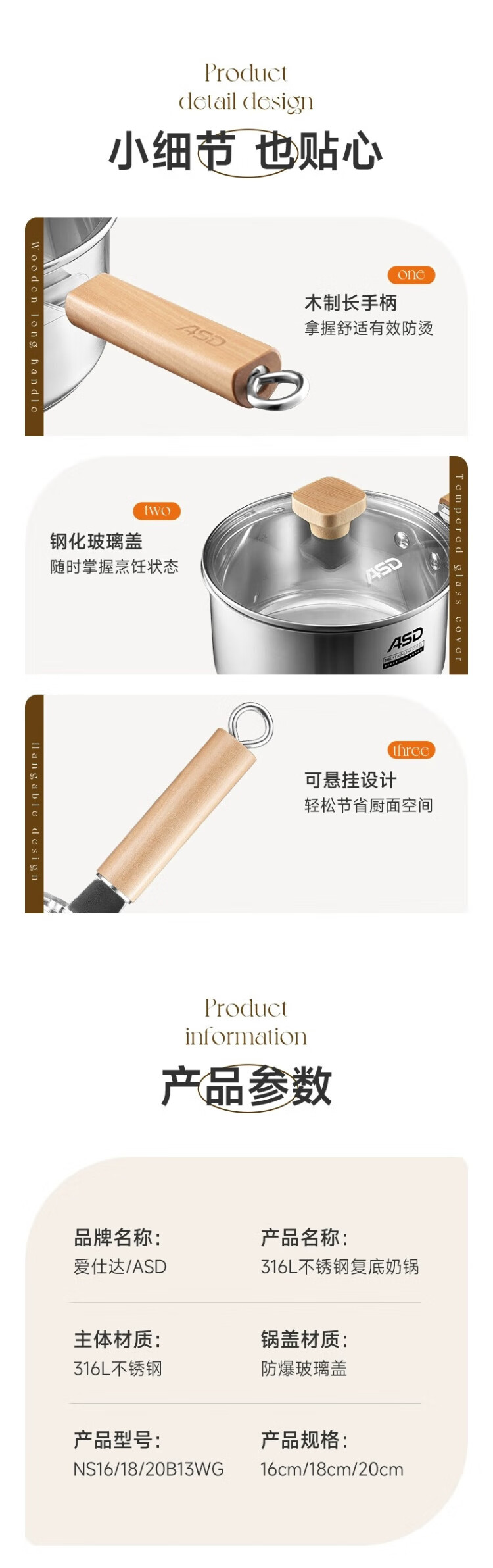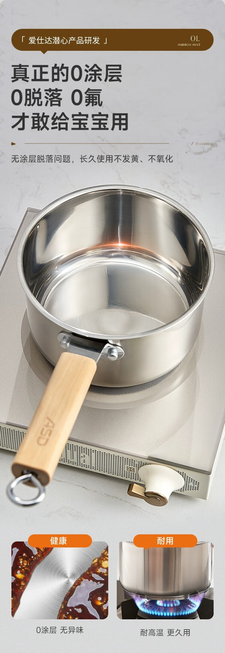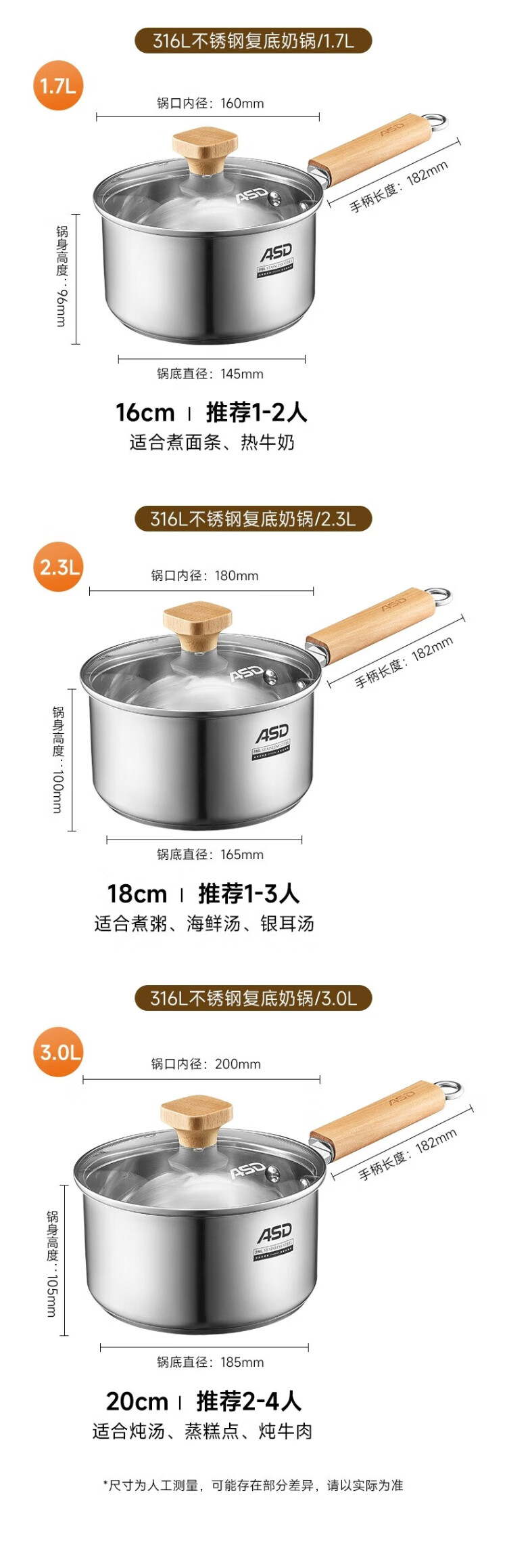 ASD (ASD) 316L stainless steel milk pot 20CM + 304 stainless steel steaming grid