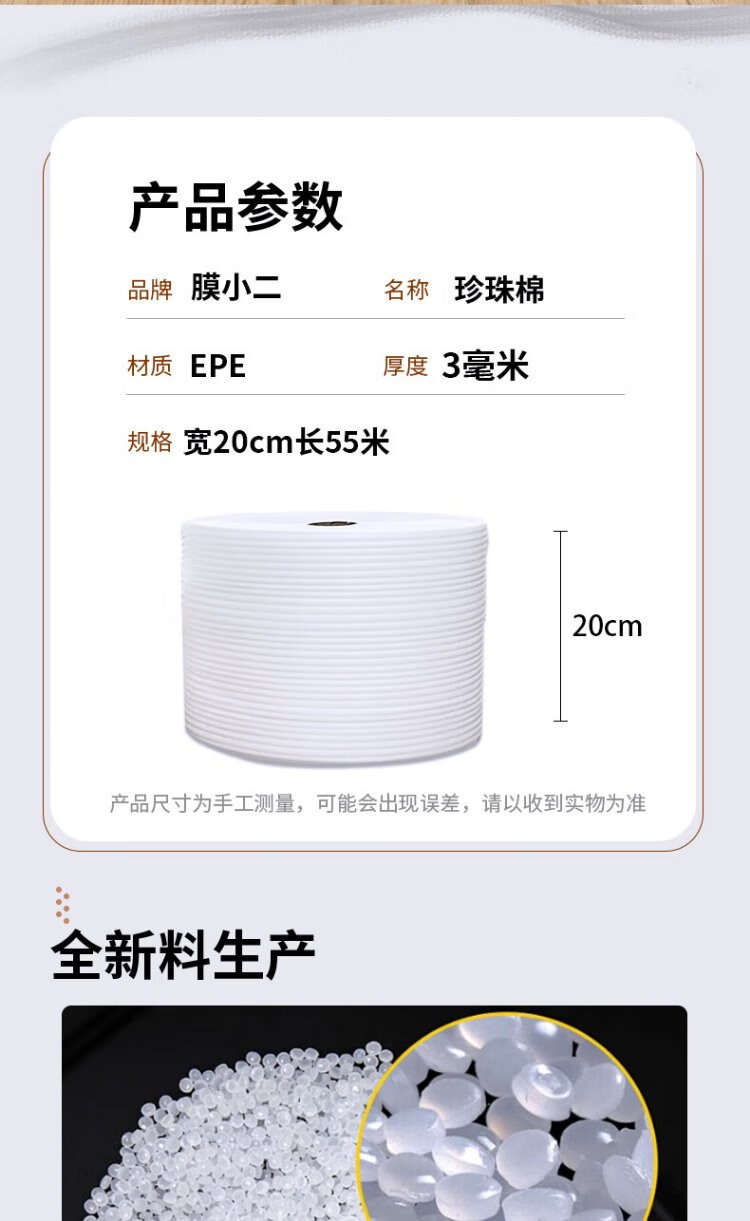 Membrane waiter shockproof pearl cotton foam cotton roll 3mm wide 20cm express foam board packaging packaging film filled cotton reinforced shockproof epe