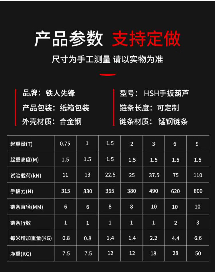 Iron Man Pioneer Lever Hoist Lifting Inverted Chain Hand Tensioner Hand Crane Manual Hoist National Standard 1 Ton * 1.5 Meters