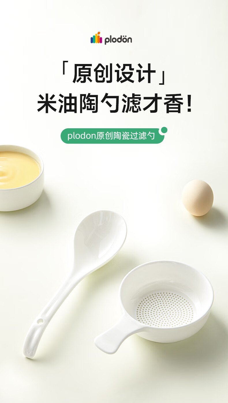 PLODON baby food supplement ceramic spoon kitchen household natural clay fired rice oil soup spoon
