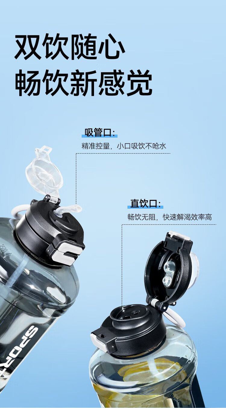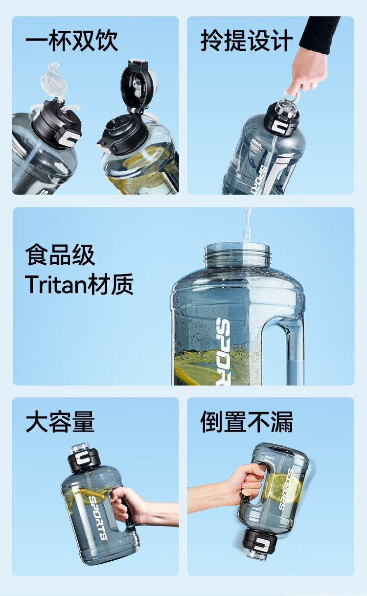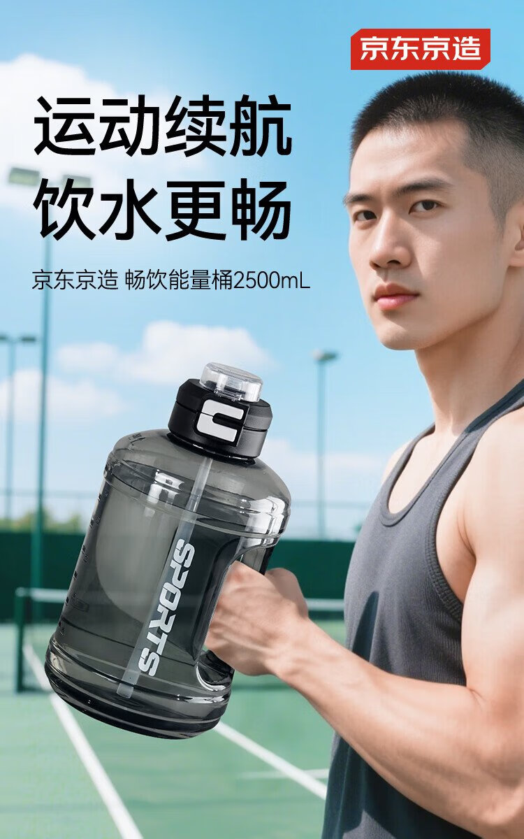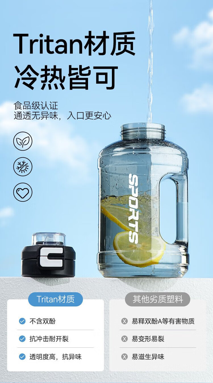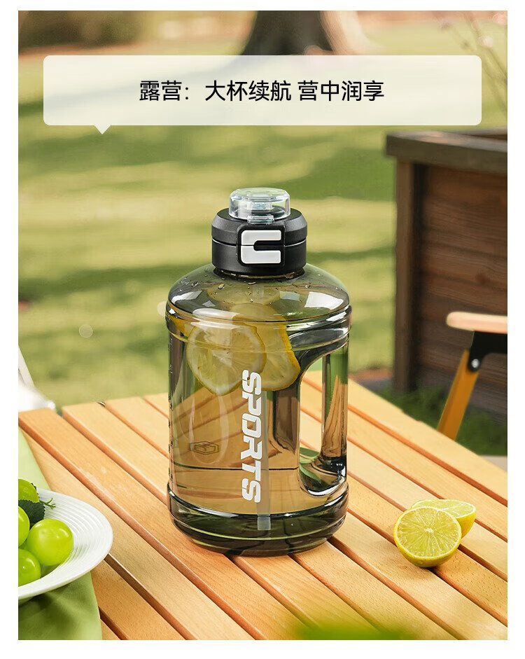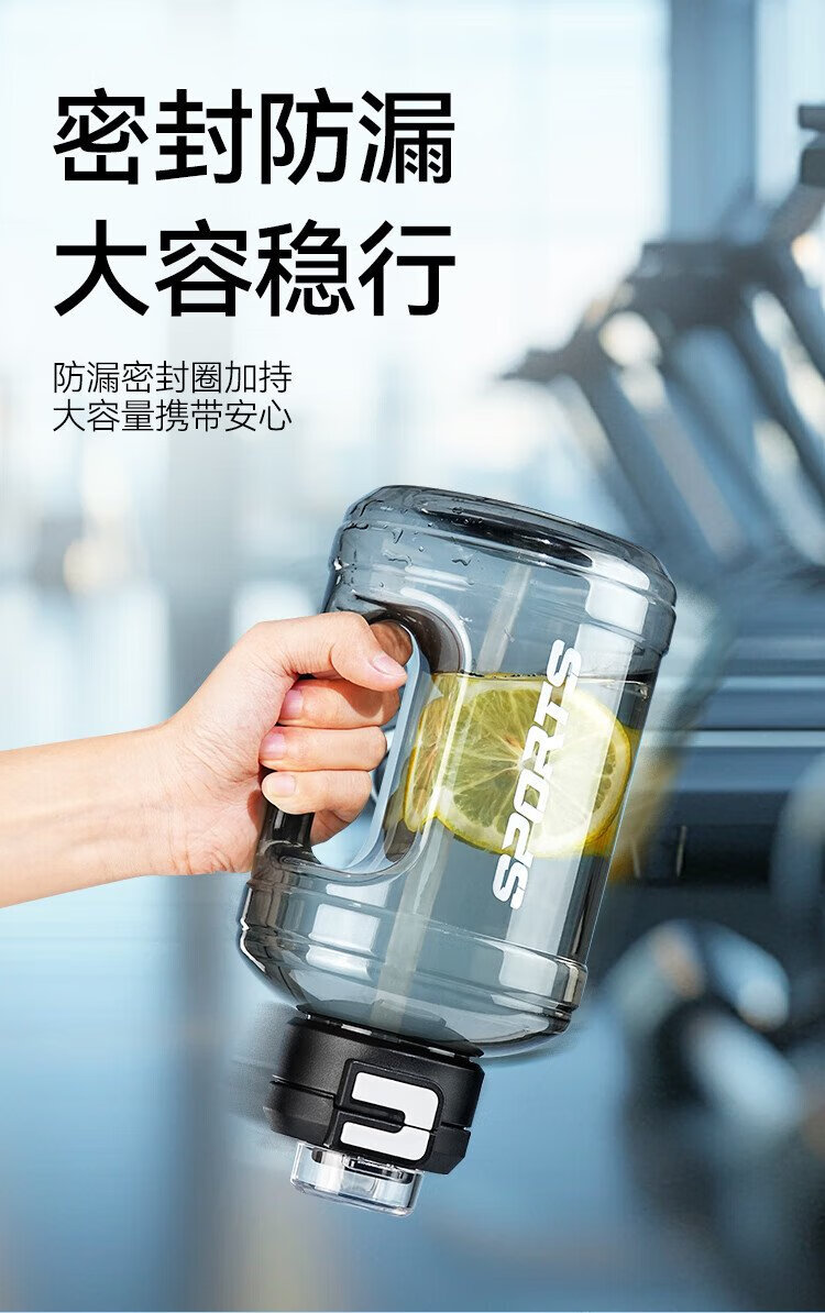 Tokyo-made ton bucket sports water cup Tritan super large capacity kettle fitness straw big belly cup 2500mL black