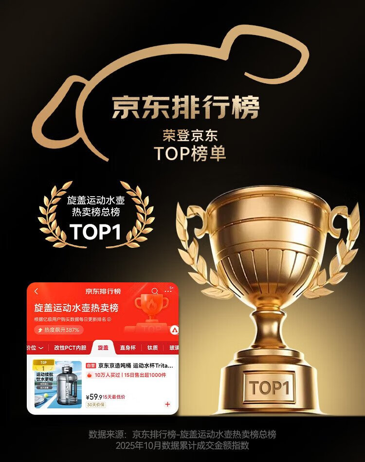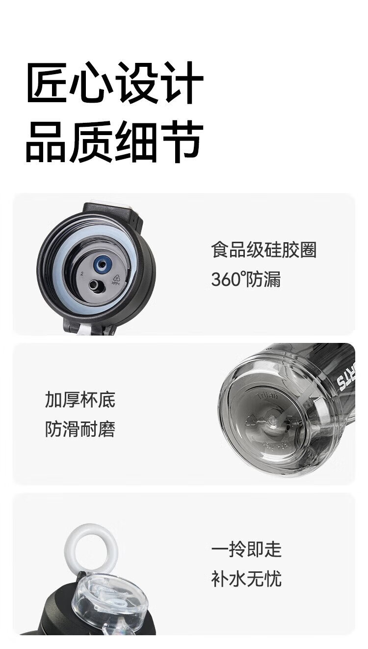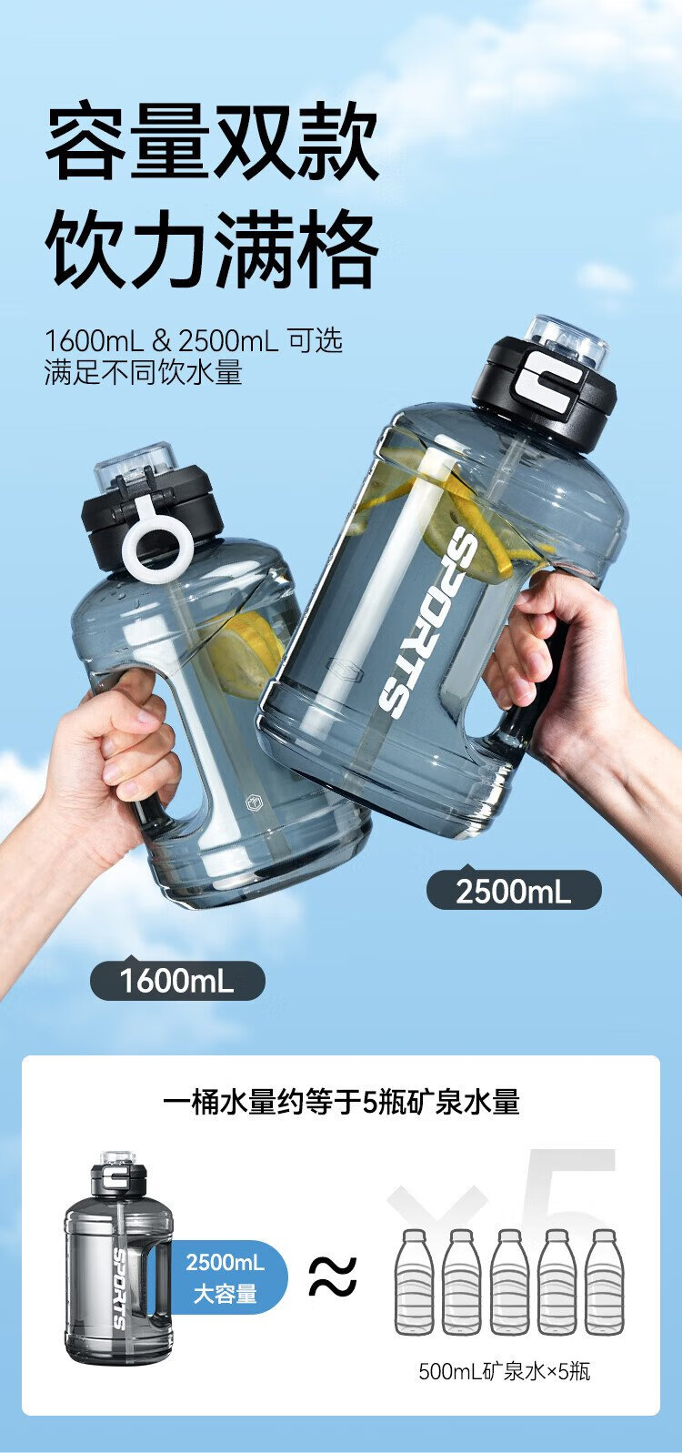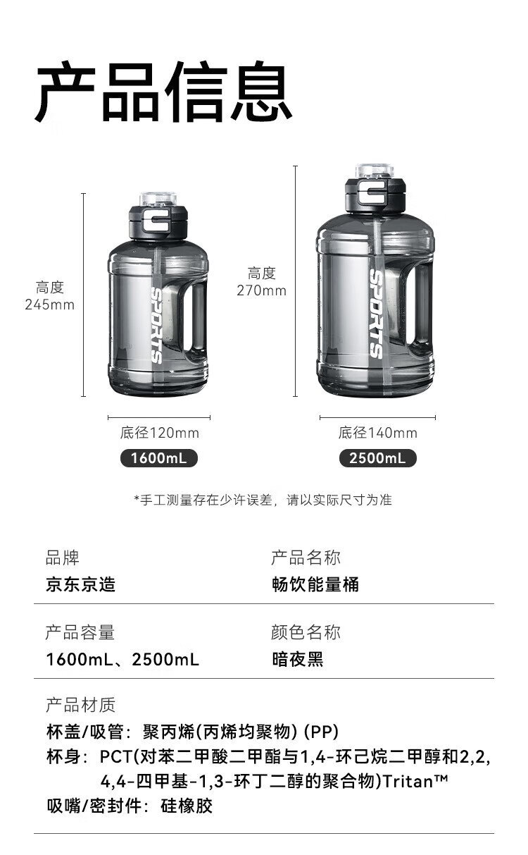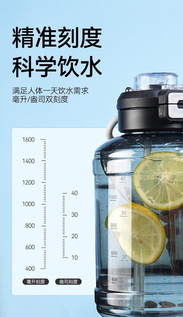 Tokyo-made ton bucket sports water cup Tritan super large capacity kettle fitness straw big belly cup 2500mL black