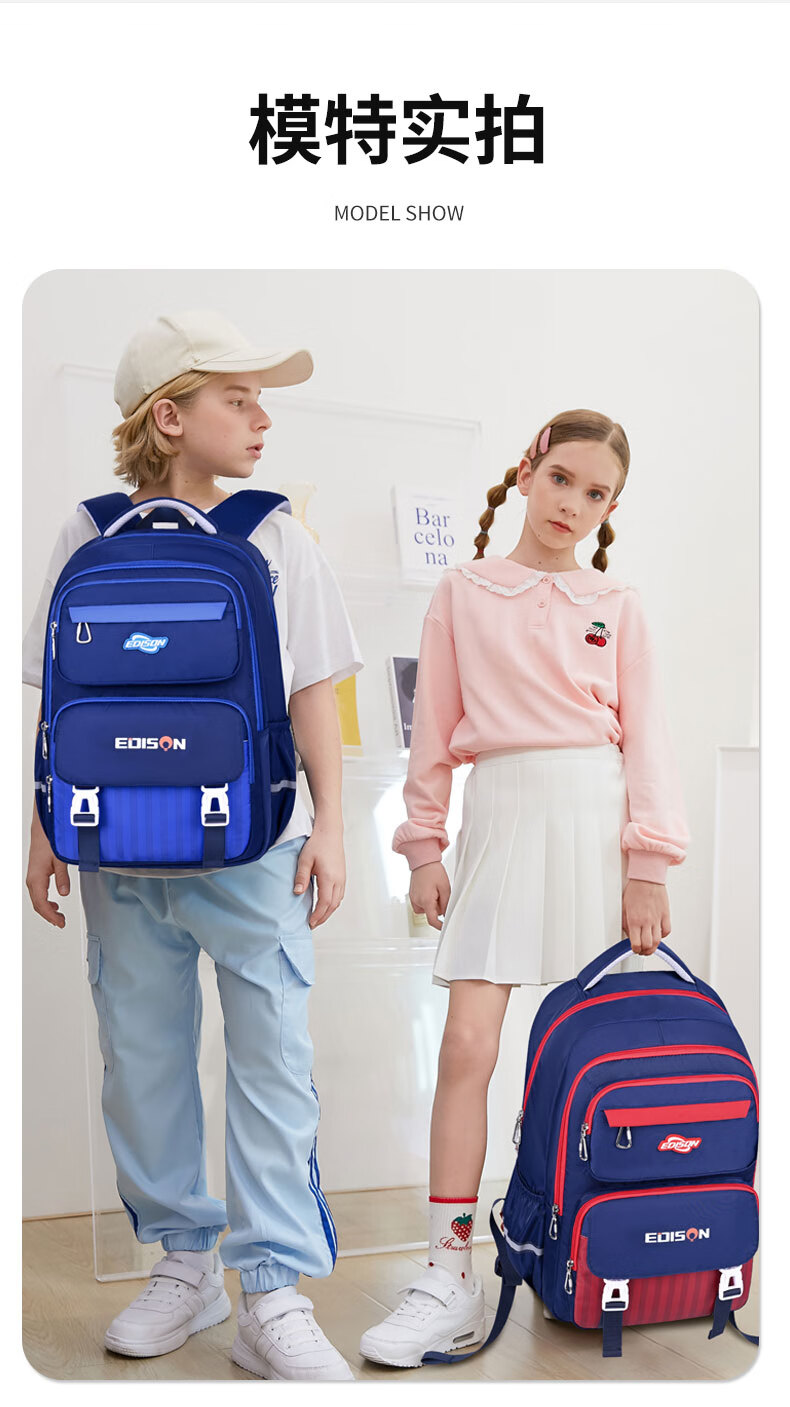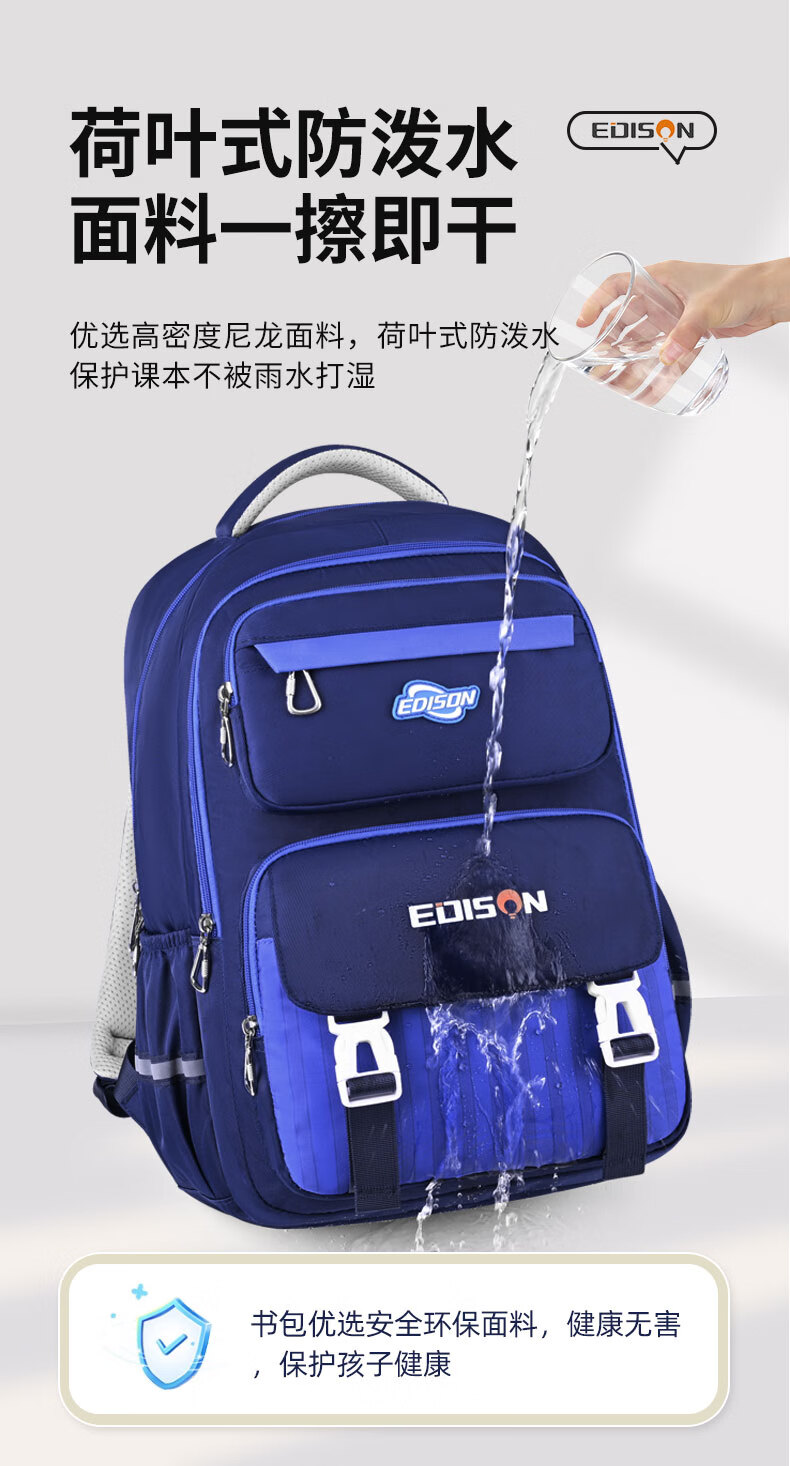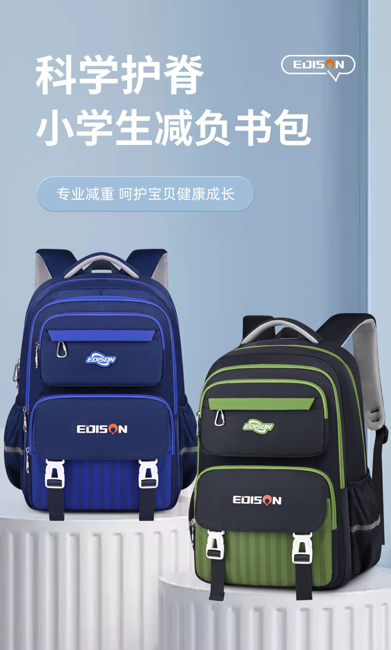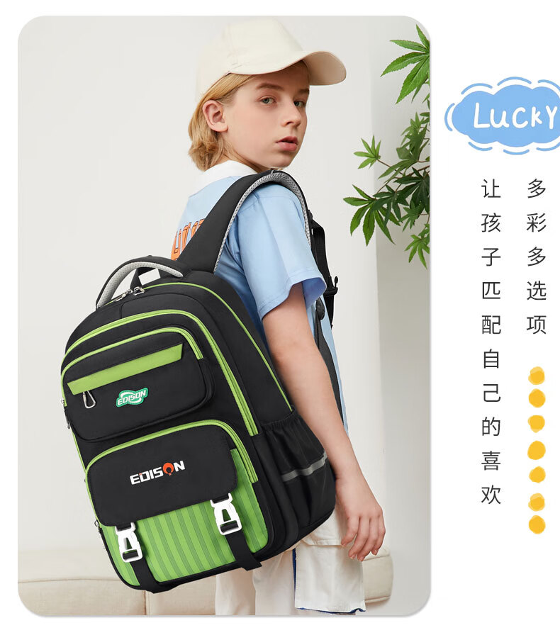 Edison inventor primary school backpack for boys and girls in grades 1-3-6 to reduce burden and protect spine large capacity children's backpack k018-1 black green