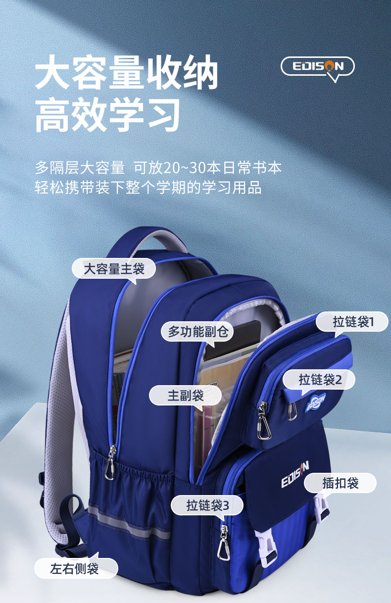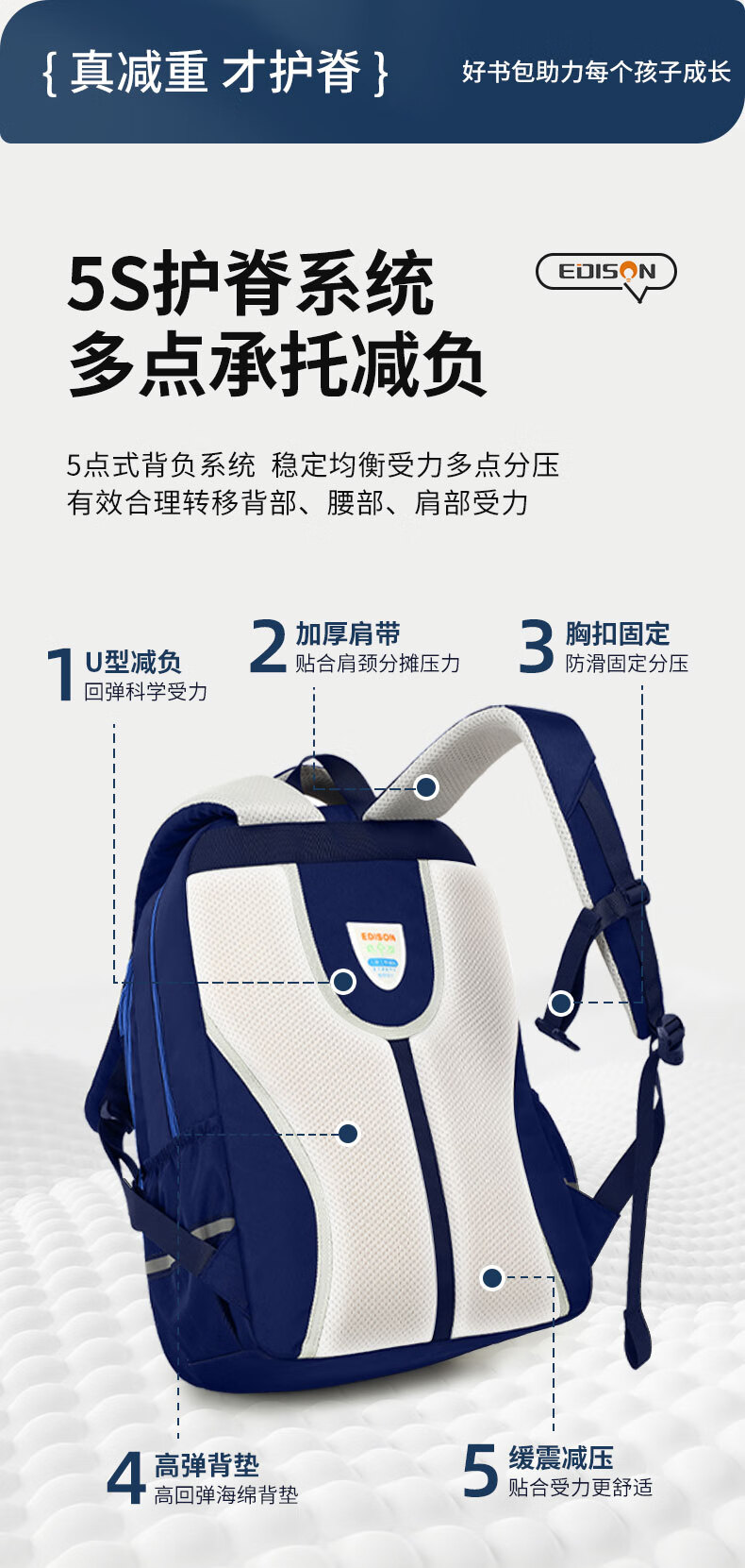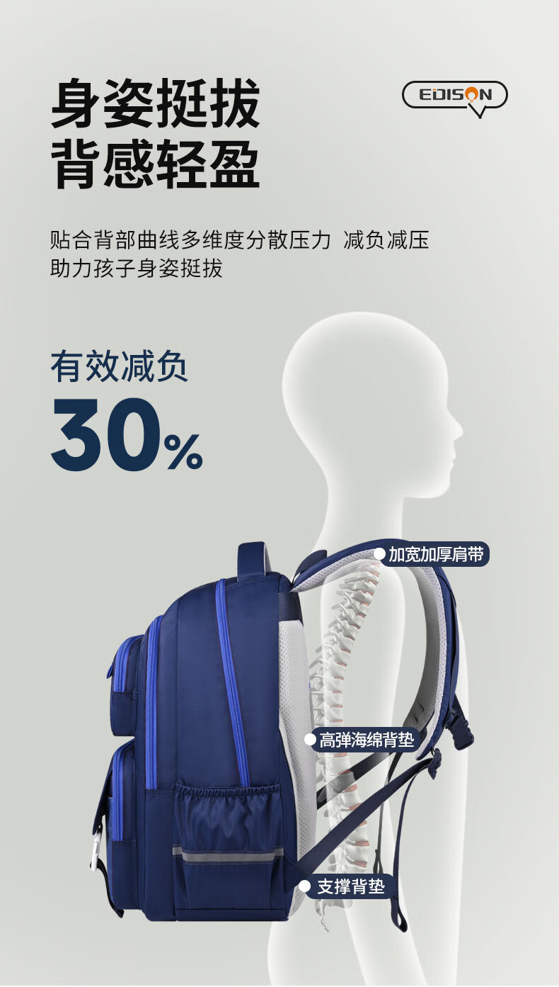 Edison inventor primary school backpack for boys and girls in grades 1-3-6 to reduce burden and protect spine large capacity children's backpack k018-1 black green