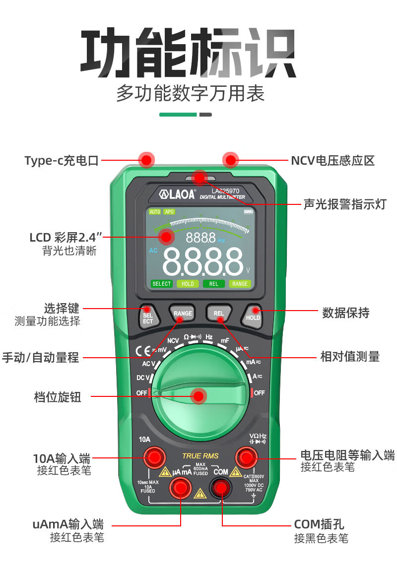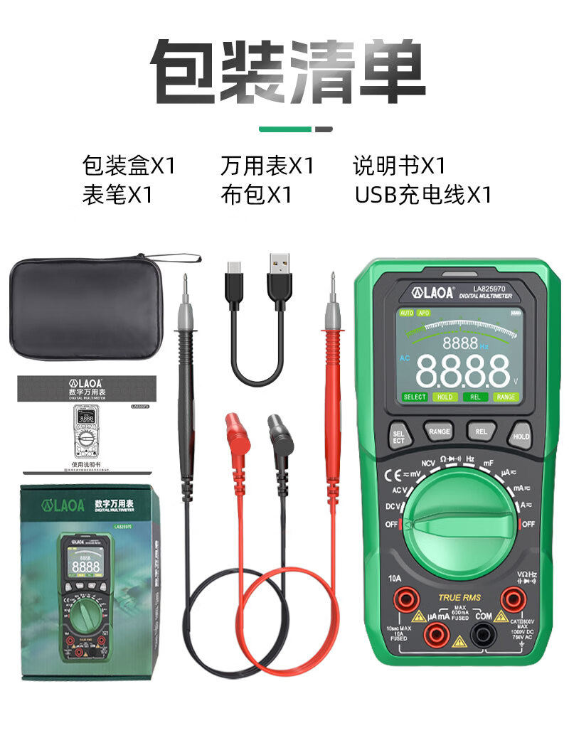 LAOA Lao A fully automatic smart multimeter lithium battery direct charging digital high-precision multimeter LA825970