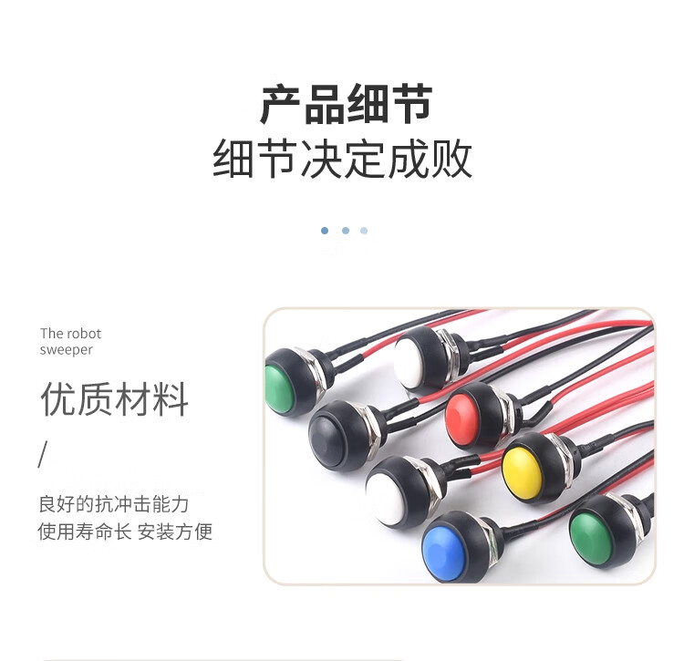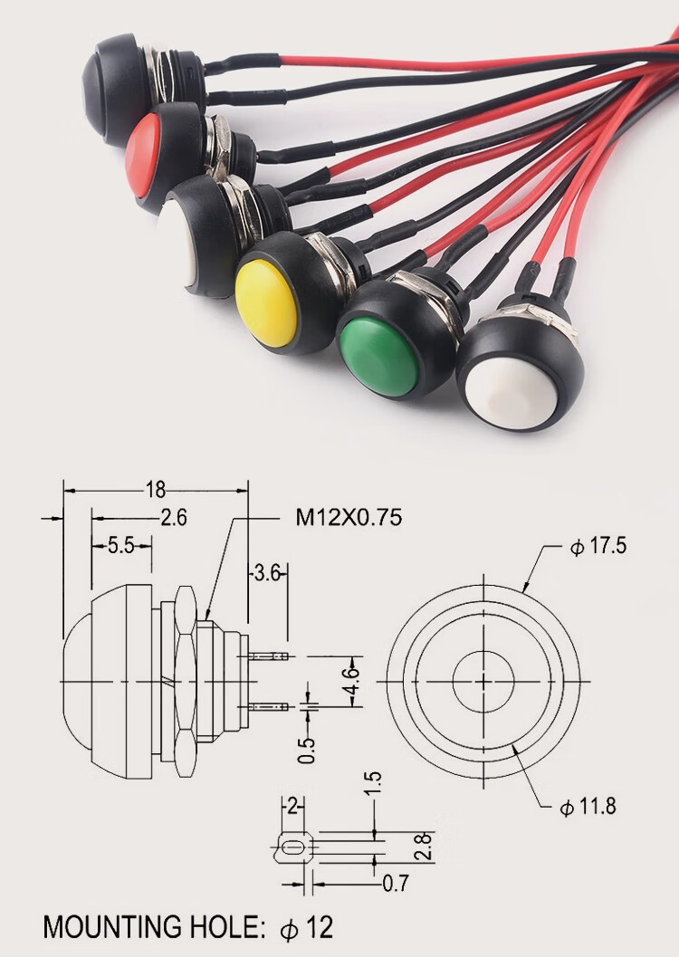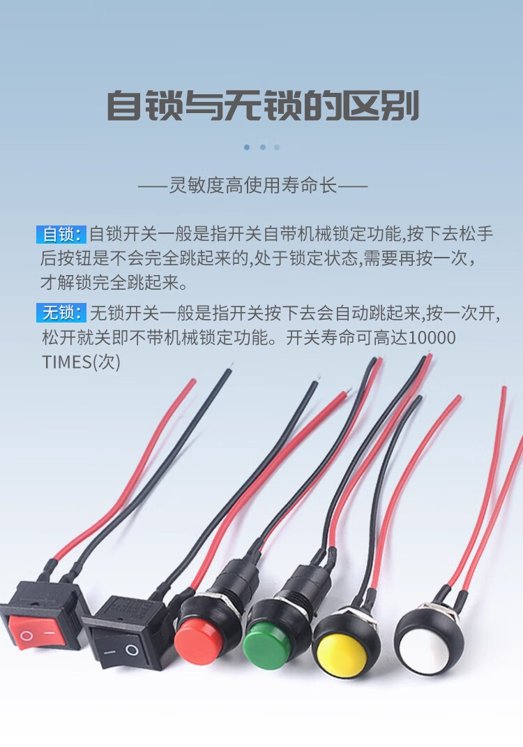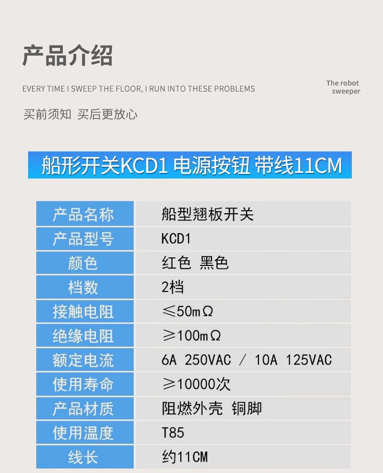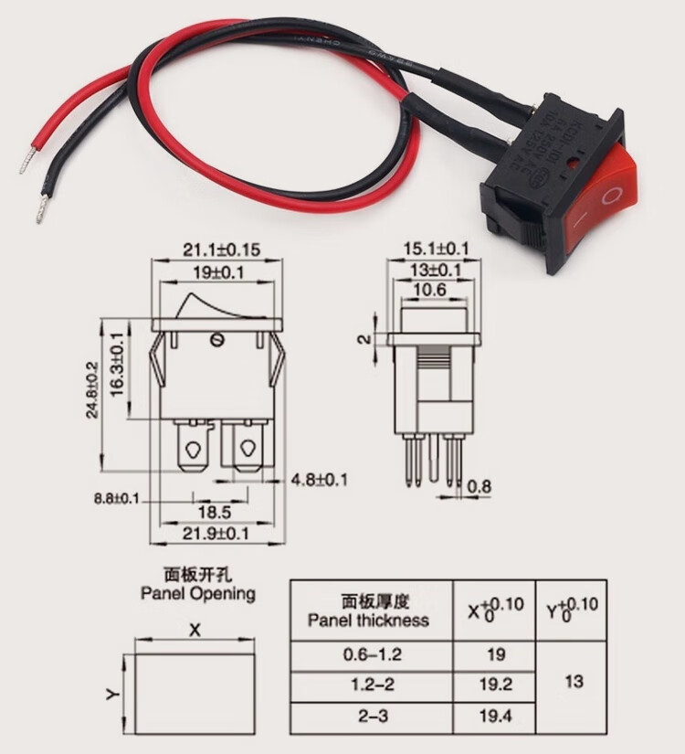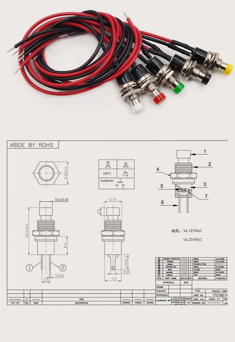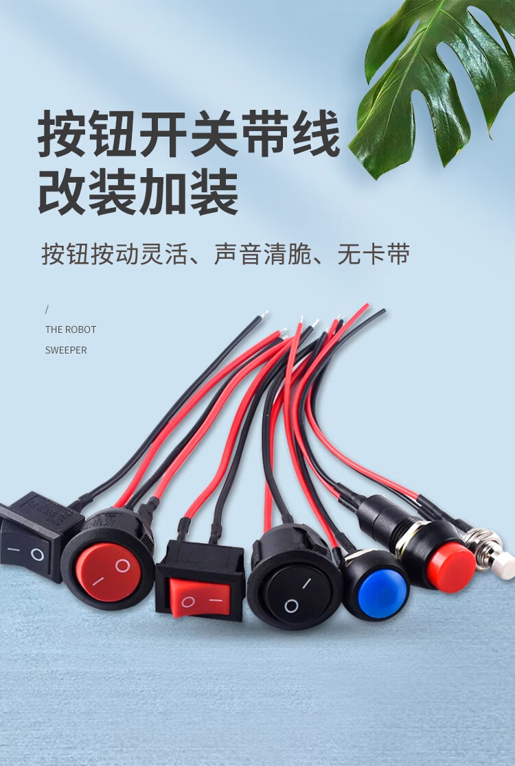 ZAVE switch with wire, small boat-shaped round button KCD1 round black 2 feet 2 gears with wire
