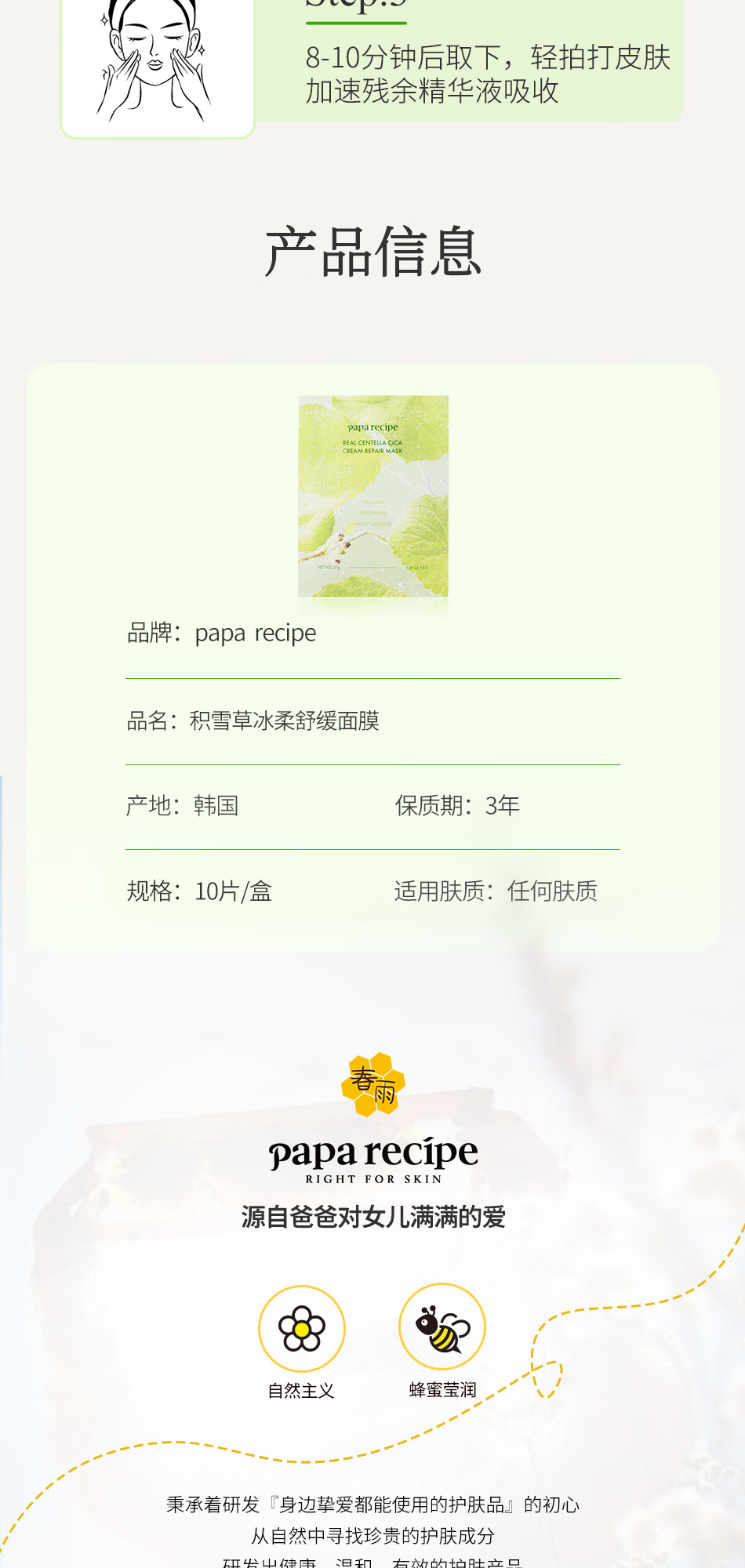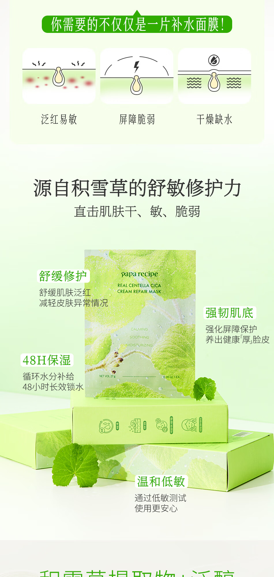 Chunyu (Papa recipe) Centella asiatica ice soft soothing mask 10 pieces powerful moisturizing and moisturizing