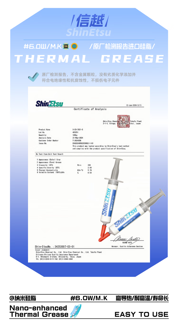 ShinEtsu ShinEtsu X-23-7921-5 thermal conductive silicone grease computer CPU silicone grease notebook thermal paste thermal conductivity 6.0 thermal conductivity 1G/support