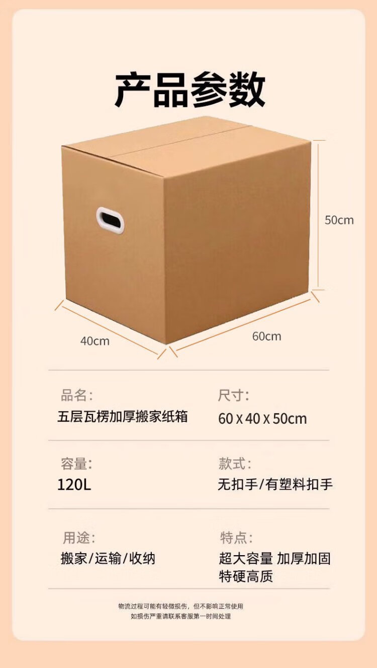 Mingya Moving Carton Extra Large Packing Box 60*40*50cm Sealed Carton Thickened Express Packing Moving Carton Box with Plastic Buckle Hand Carton Box 5 Pack 5363