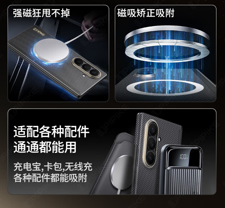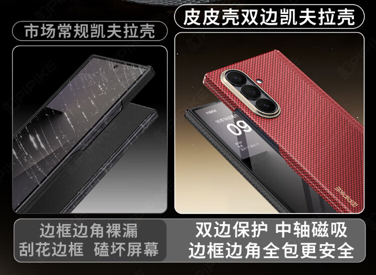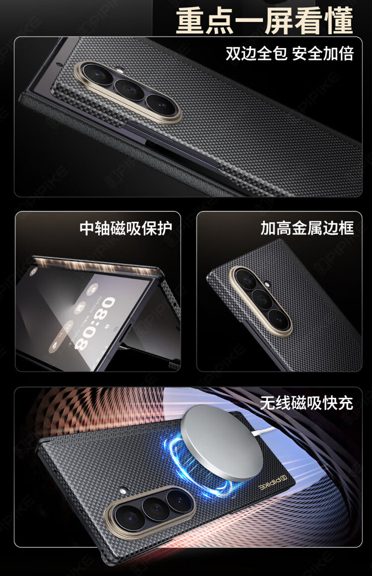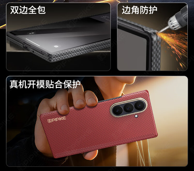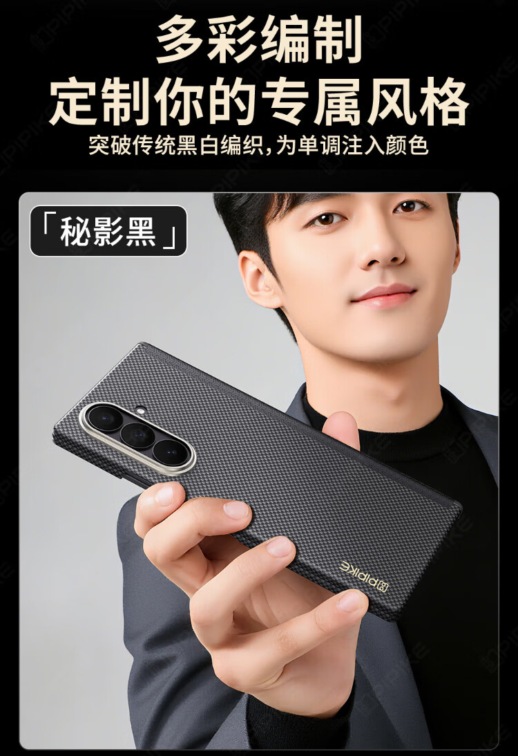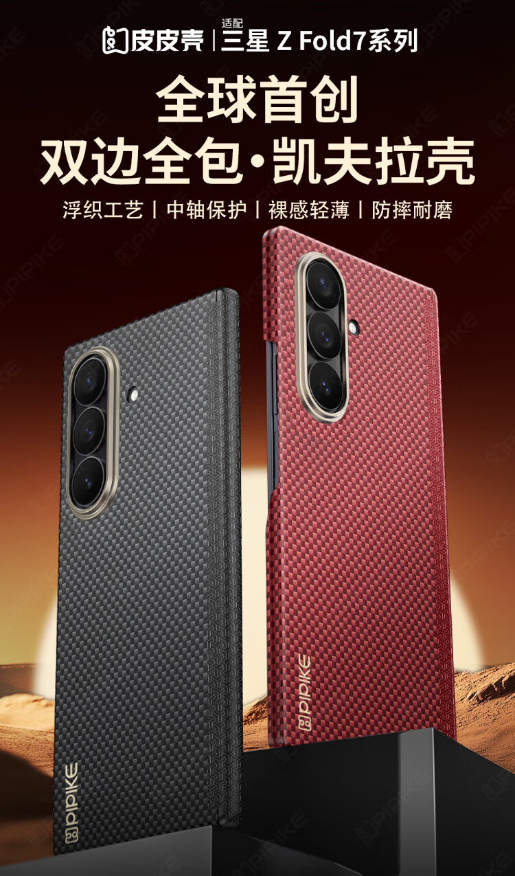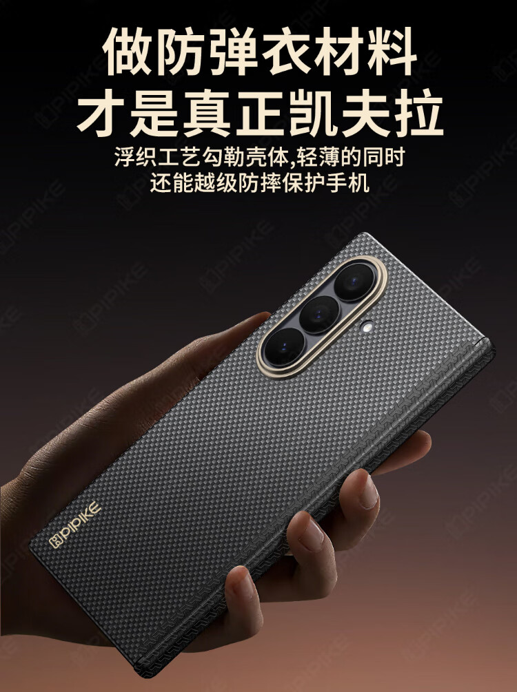 PIPIKE leather case, the world's first all-inclusive upper and lower screen, suitable for Samsung ZFold7/W26 Kevlar mobile phone case zfold7 ultra-thin all-inclusive anti-fall Xuanye black single back shell