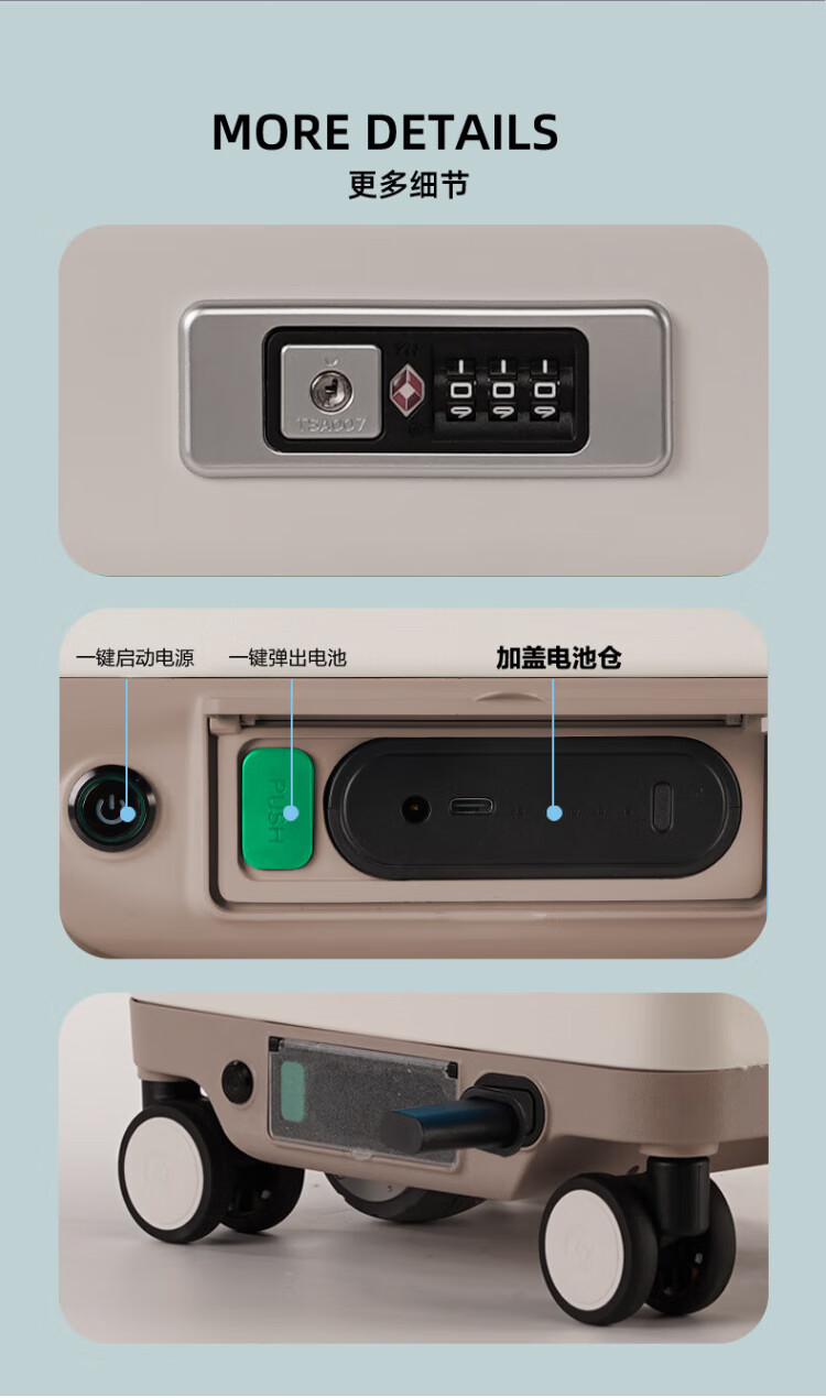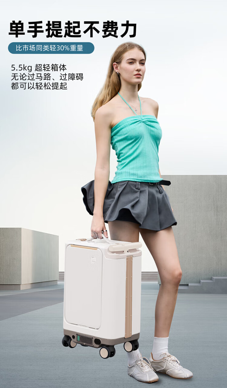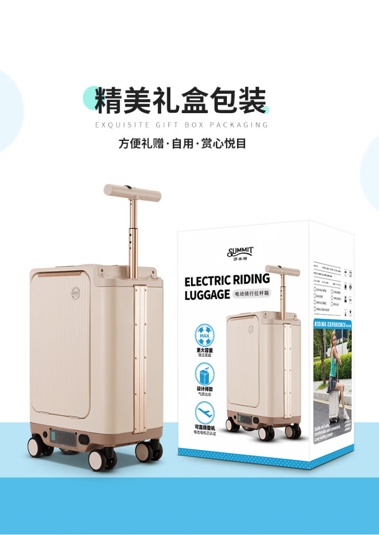 Shamit 3C certified electric suitcase can sit and ride electric smart baby walking trolley suitcase elegant white 20 inches
