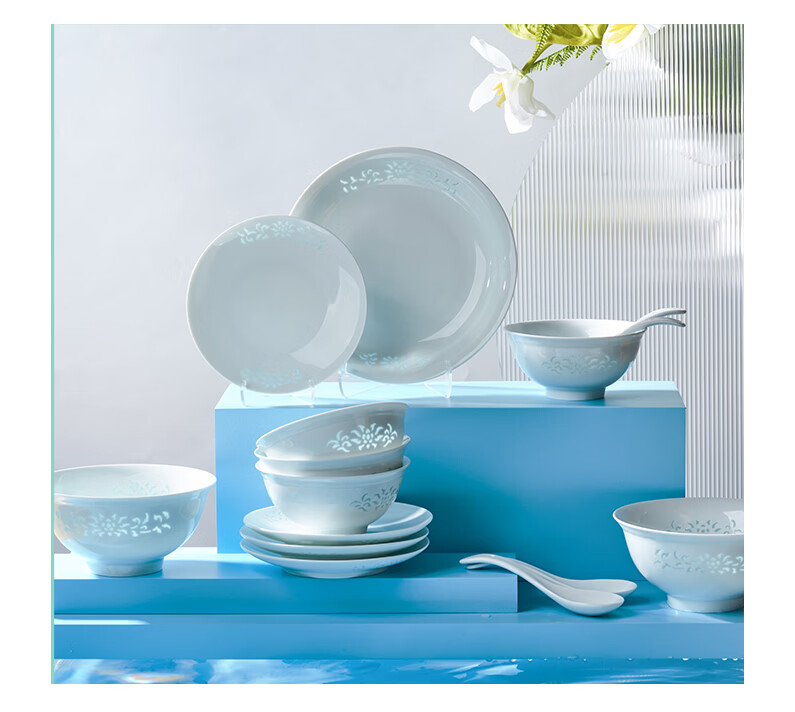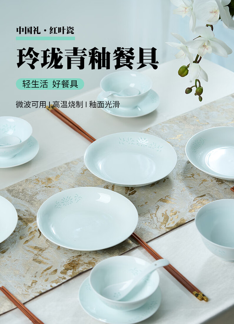 Hongye GZ RL Chinese porcelain Jingdezhen bowl and plate set wedding gift for newlyweds (20-piece exquisite medium tableware)