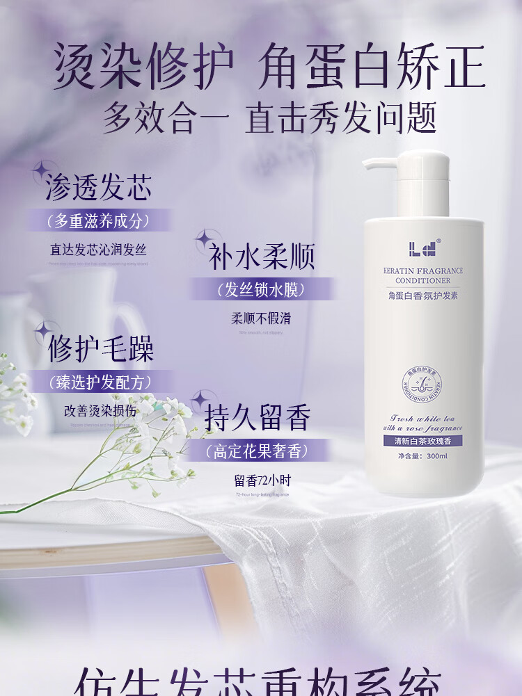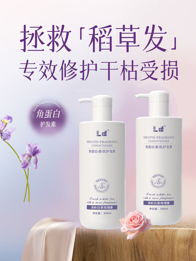 LD keratin conditioner hair mask smoothes and repairs to improve dryness and frizzy hair, moisturizes and leaves fragrance, smooth, shiny and silky